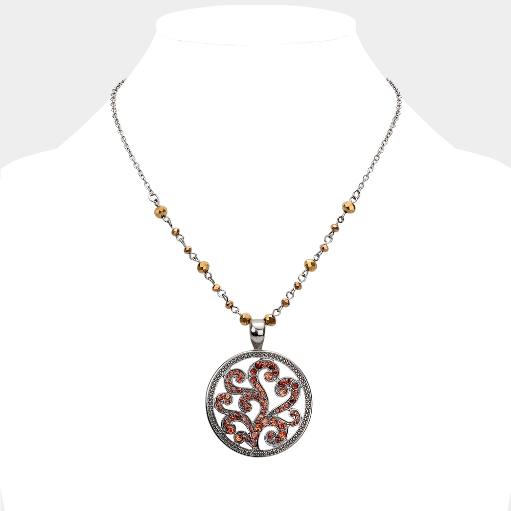 Rhinestone Embellished Metal Round Pendant Necklace