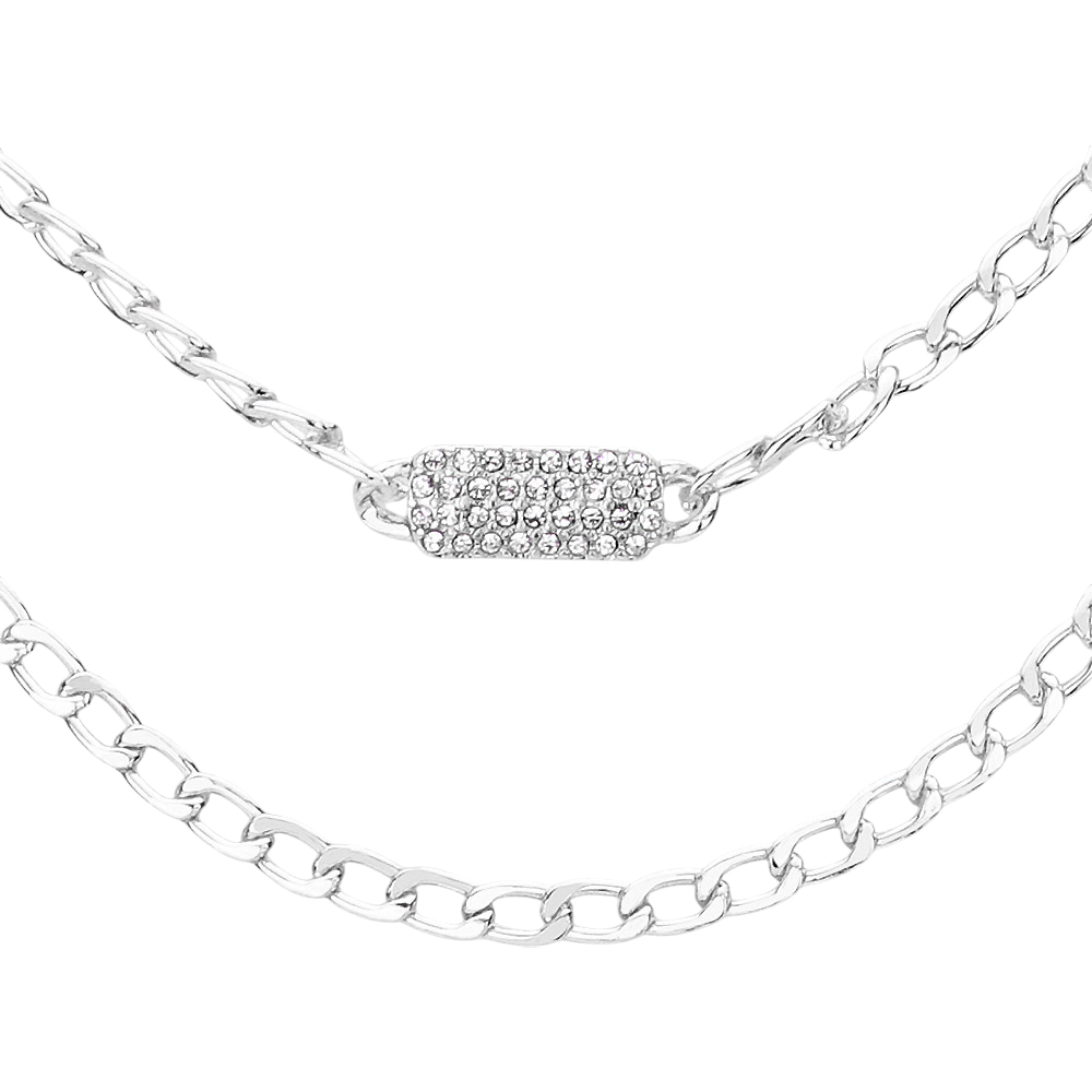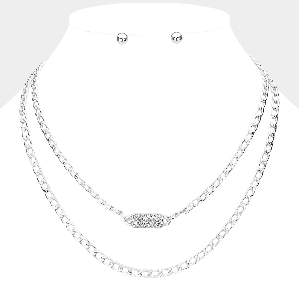 Rhinestone Embellished Rectangle Pendant Accented Layered Necklace