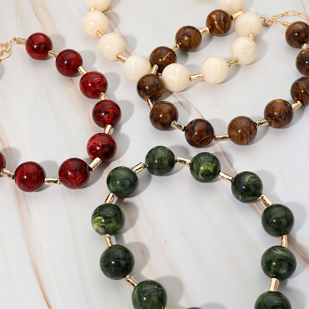 • Add timeless sophistication to your look with this round beaded statement necklace. Featuring polished beads connected by sleek gold accents, it blends classic charm with modern elegance—perfect for elevating both everyday outfits and evening ensembles.