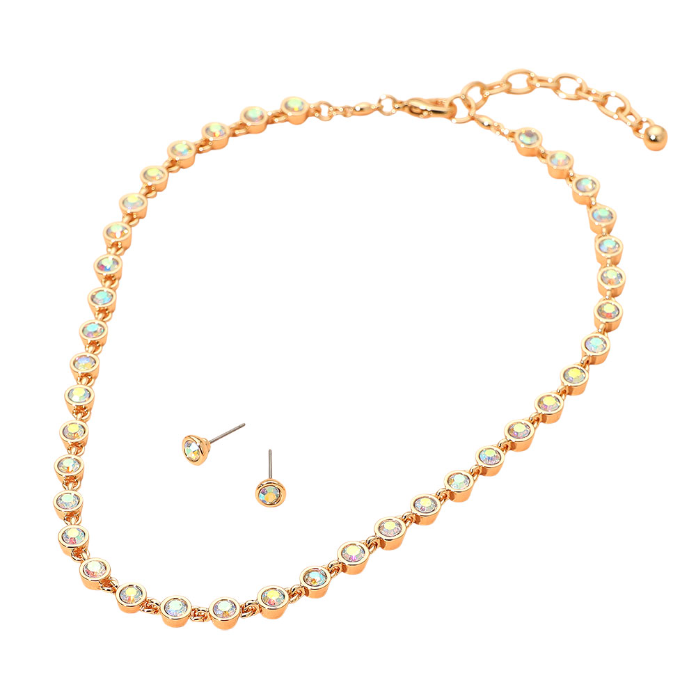 Details • Necklace Size : 16" + 2" L • Decor Size : 0.25" L • Earrings Size : 0.25" L • Add a touch of sparkle to your style with this rhinestone necklace and stud earring set. Featuring dazzling stones in a refined design, this elegant duo offers timeless sophistication for both everyday wear and special occasions, enhancing any outfit with radiant charm. • Lead and Nickel Compliant