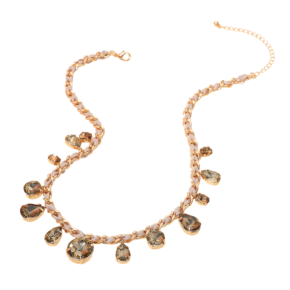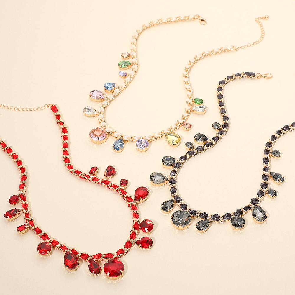Details • Necklace Size : 16" + 3" L • Decor Size : 0.75" L • This elegant necklace features a sequence of teardrop-cut stones suspended along a refined chain, creating graceful movement and luminous sparkle. Designed for versatile styling, it adds a touch of sophistication to both everyday ensembles and special-occasion looks. • Lead and Nickel Compliant
