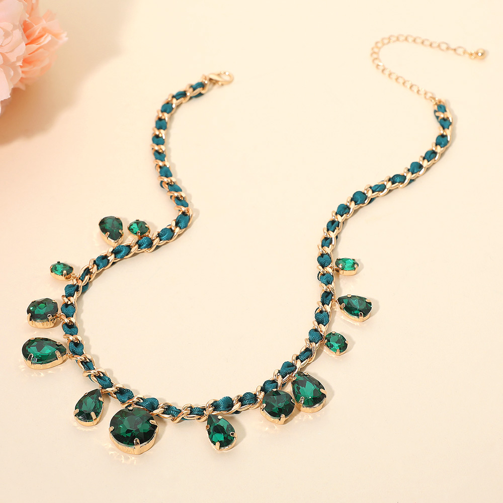 Round Teardrop Stone Cluster Station Bow Braided Chain Necklace Round Teardrop Stone Cluster Station Bow Braided Chain Necklace Round Teardrop Stone Cluster Station Bow Braided Chain Necklace