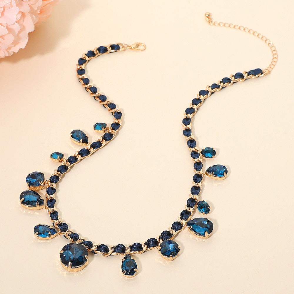 Round Teardrop Stone Cluster Station Bow Braided Chain Necklace Round Teardrop Stone Cluster Station Bow Braided Chain Necklace Round Teardrop Stone Cluster Station Bow Braided Chain Necklace