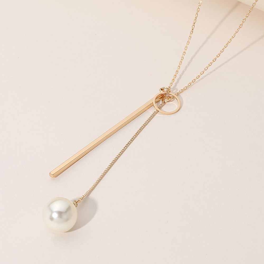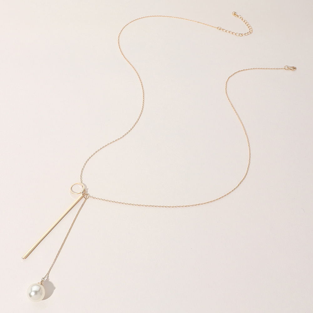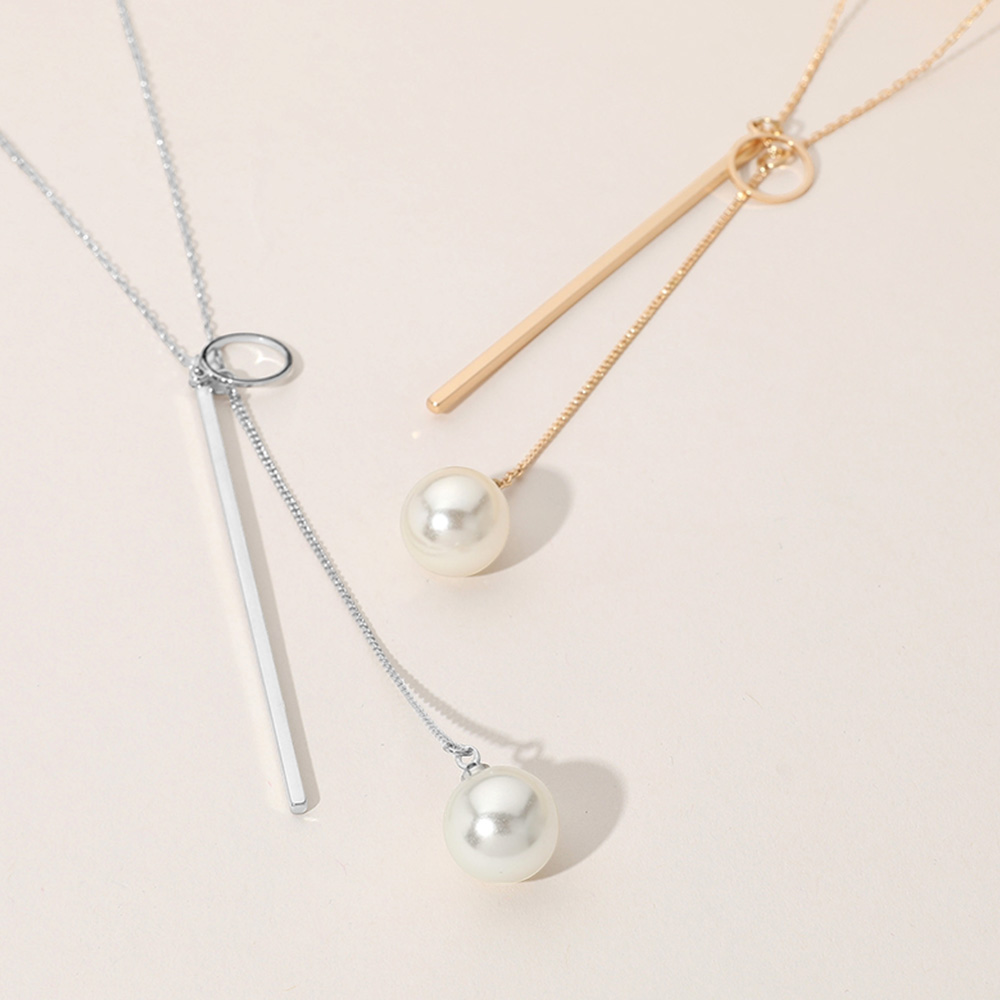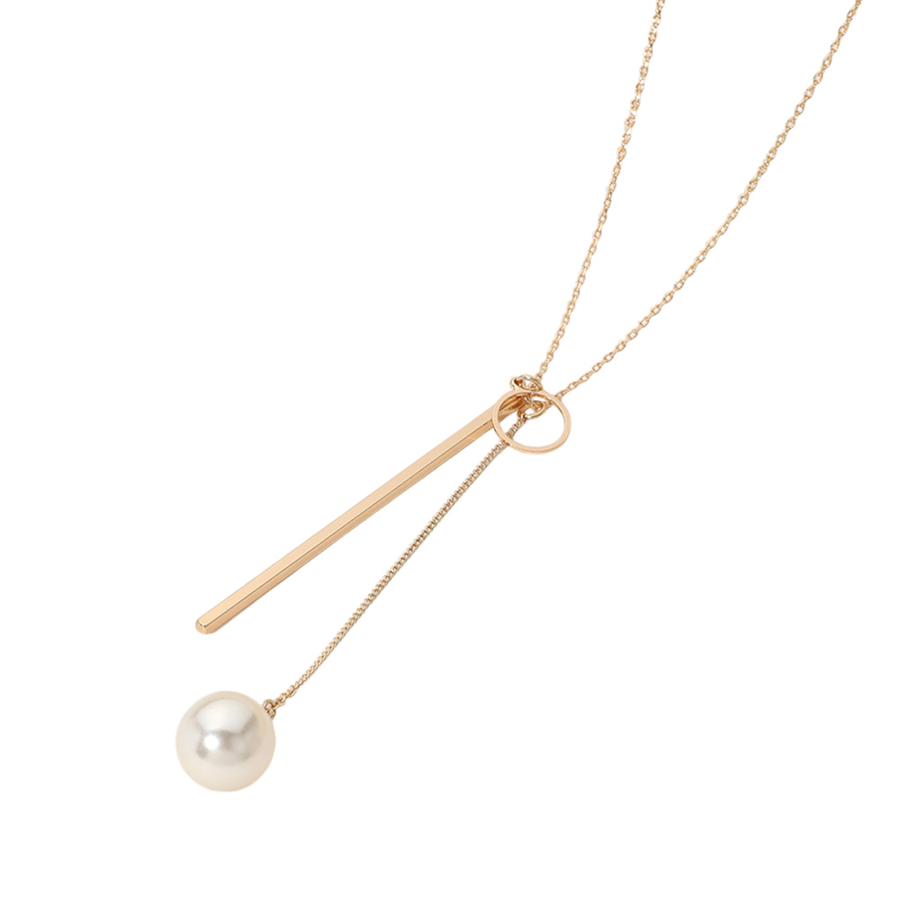 SECRET BOX_Brass Metal Geometric Pearl Tip Necklace