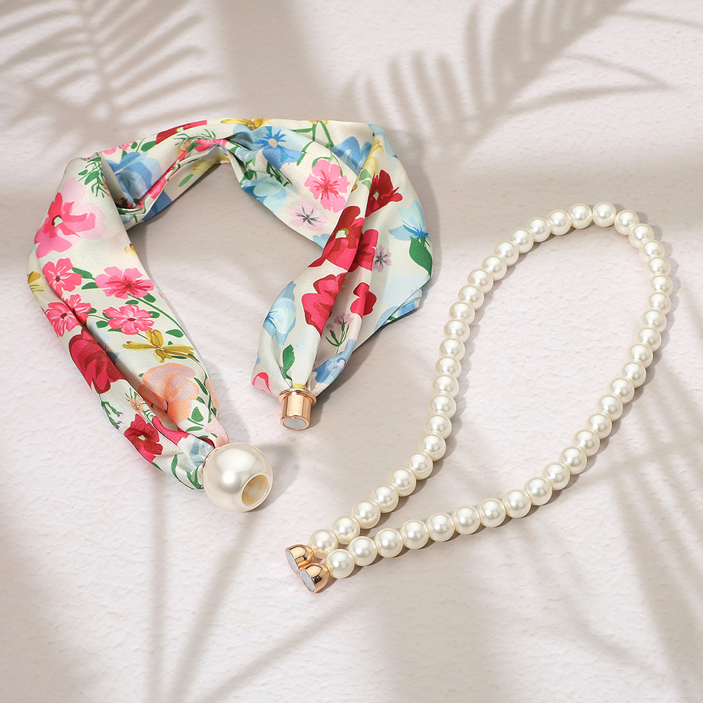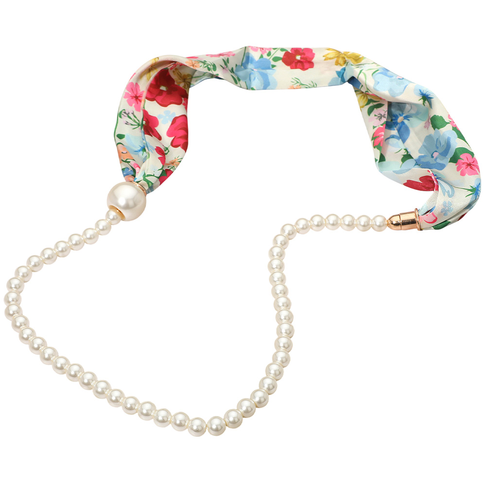 SECRET BOX_Pattern Print Fabric Scarf Pearl Magnetic Necklace