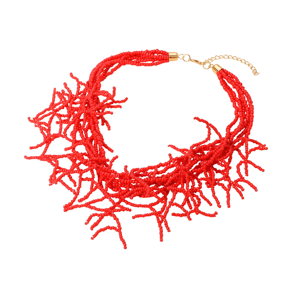 Details • Necklace Size : 18" + 3.25" L • Decor Size : 3" L • Elevate any look with this statement beaded coral necklace featuring layered clustered strands and branch-inspired shapes. Includes an adjustable extension chain for a comfortable fit. A bold, artistic accessory perfect for standout styling. • Gold Dipped • Lead and Nickel Compliant • Made In Korea