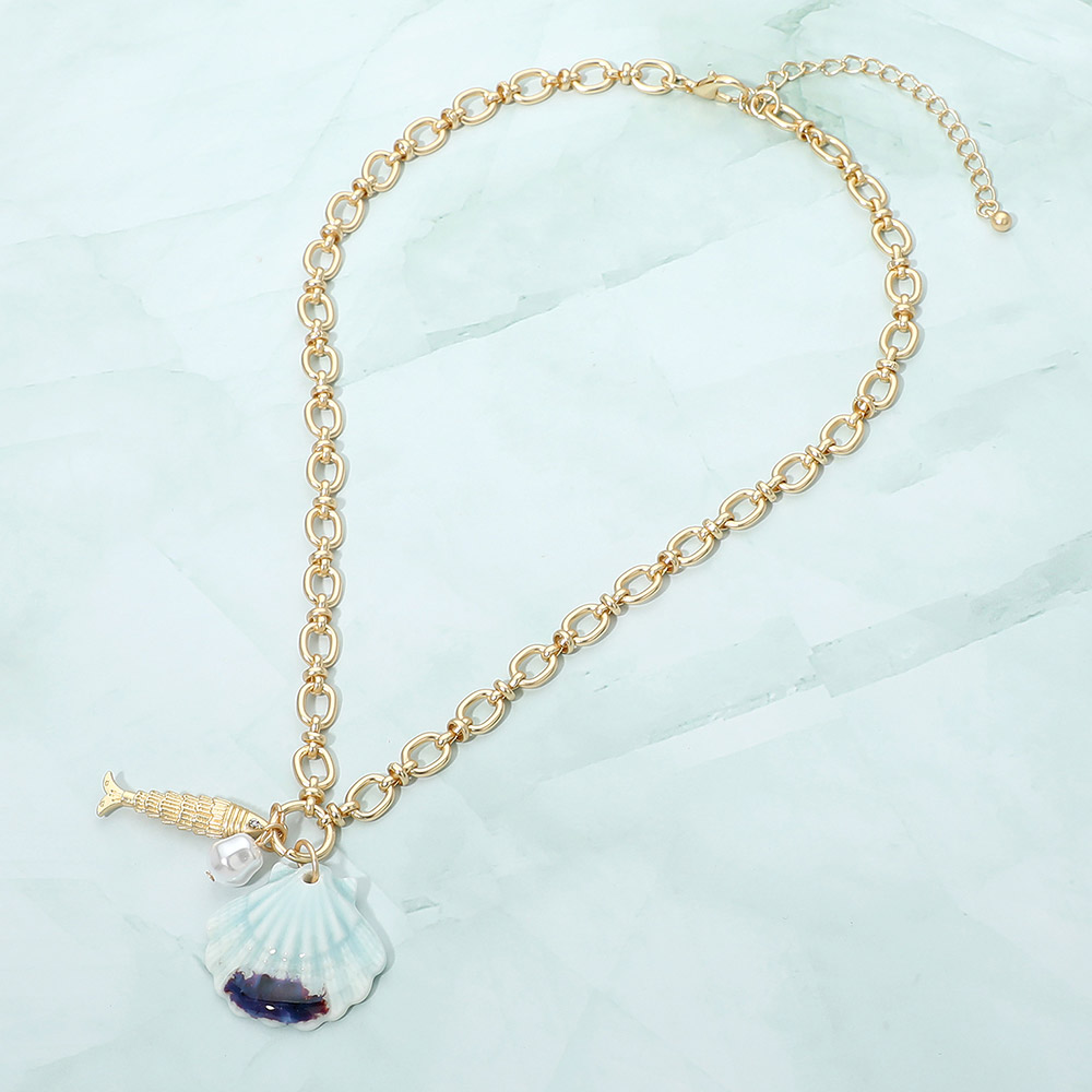 Details • Necklace Size : 17" + 3" L • Pendant Size : 1.25" X 1.25" • Coastal-inspired pendant necklace featuring a sculpted shell charm paired with a delicate accent detail on a classic chain. Designed to add an effortless beachy touch to everyday outfits, this necklace is ideal for seasonal collections, resort styling, and giftable accessory assortments for boutiques and online shops. • Lead and Nickel Compliant