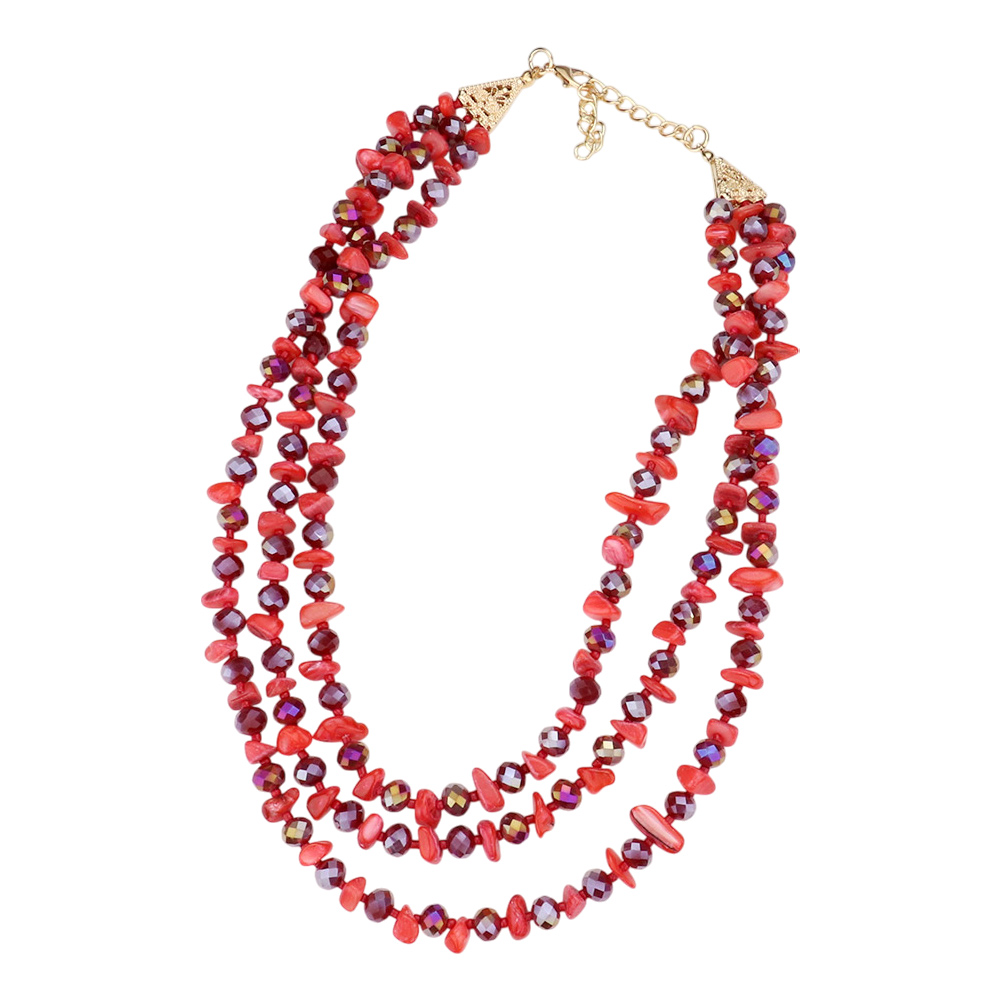 Shell Stone Faceted Beaded Triple Layered Bib Necklace