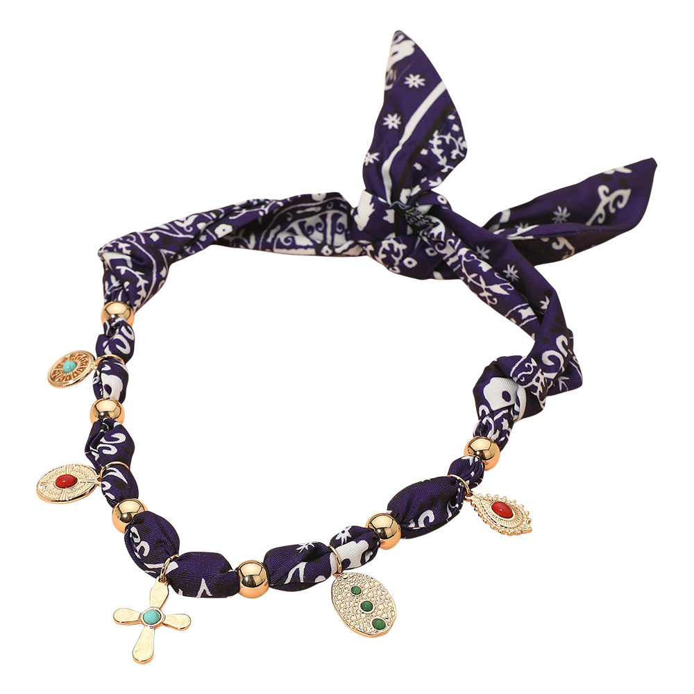 Stone Accent Boho Charm Station Fabric Scarf Adjustable Necklace