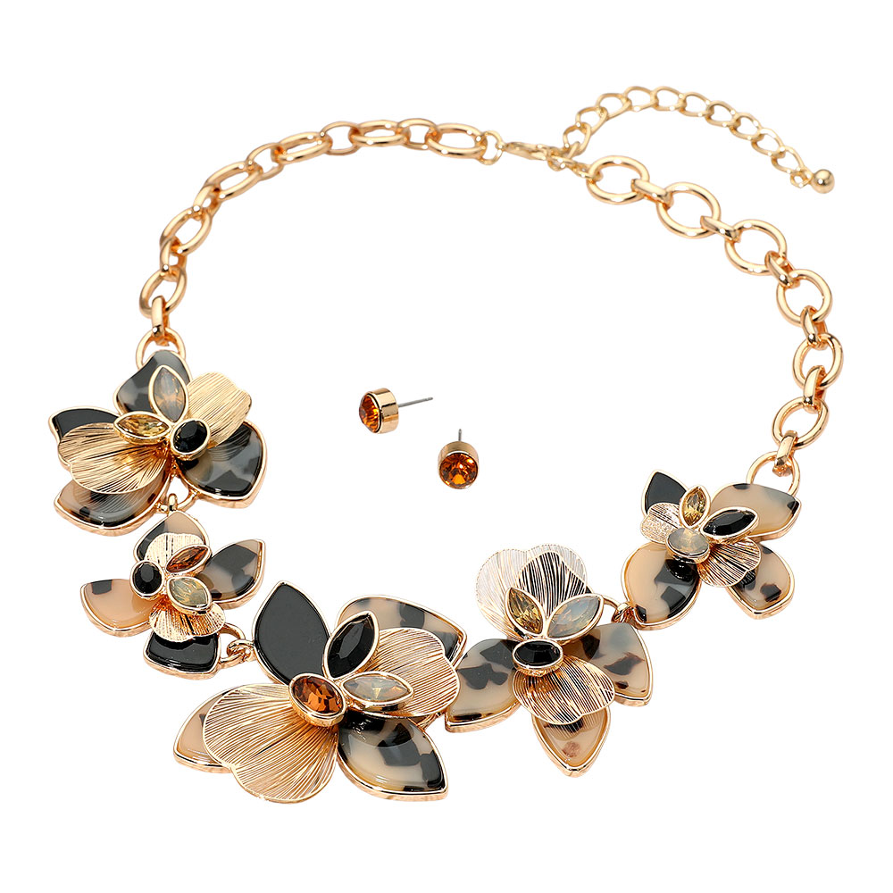 Stone Accent Resin Metal Cutout Floral Link Statement Necklace