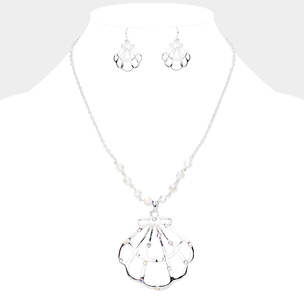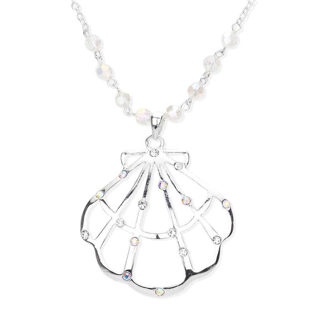 Stone Embellished Cut Out Metal Shell Pendant Necklace