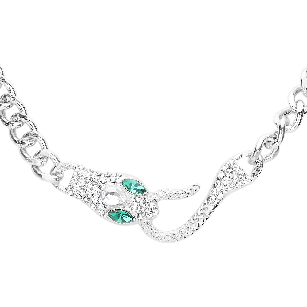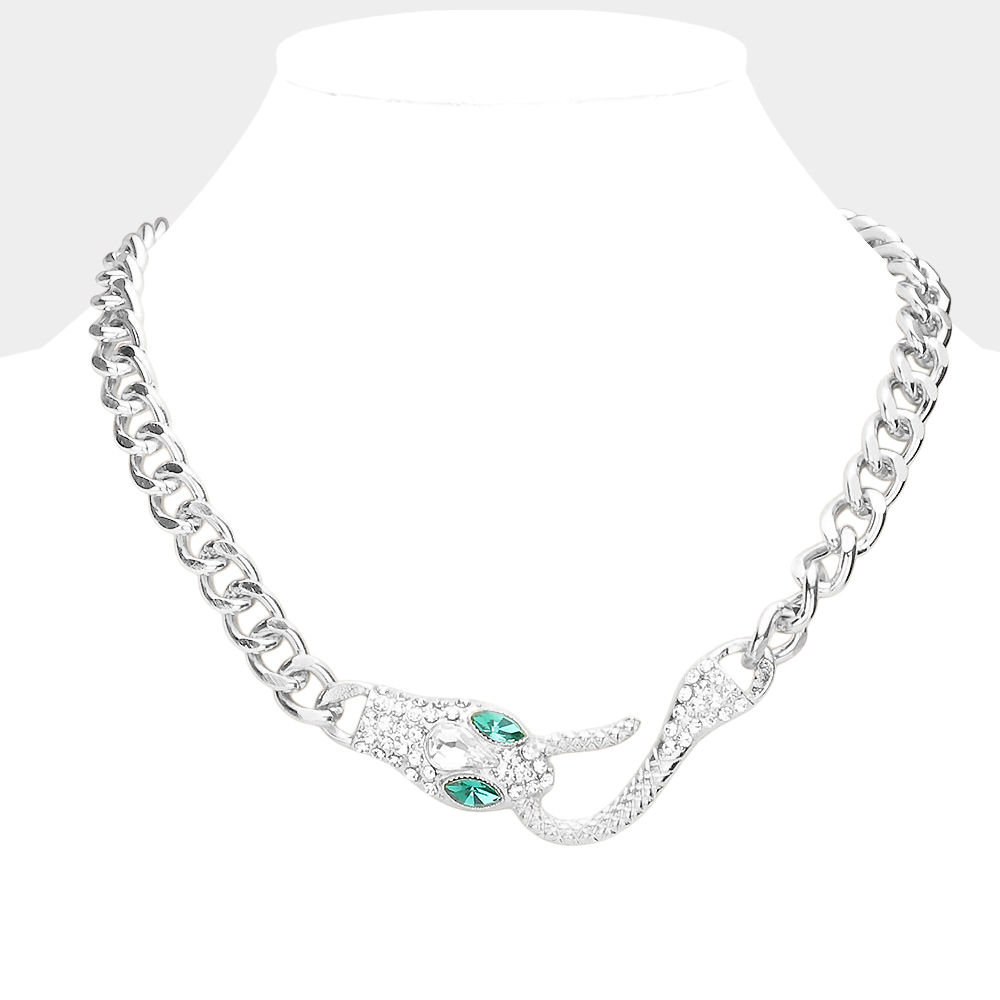 SECRET BOX_Rhinestone Embellished Metal Snake Pendant Necklace