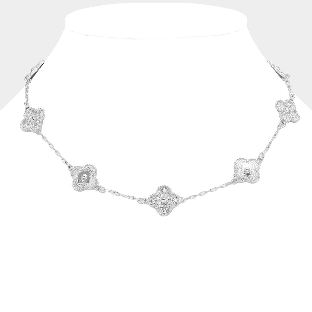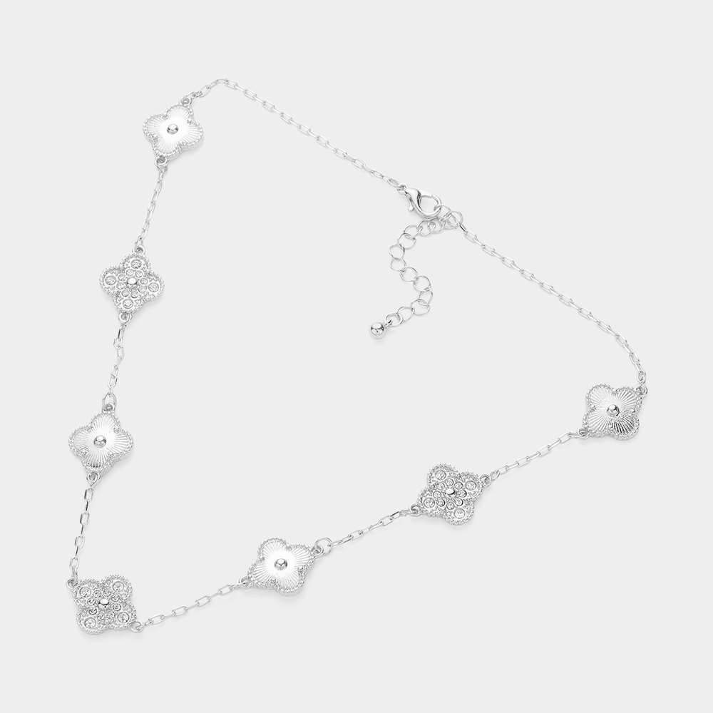 Stone Paved Mearl Quatrefoil Station Necklace