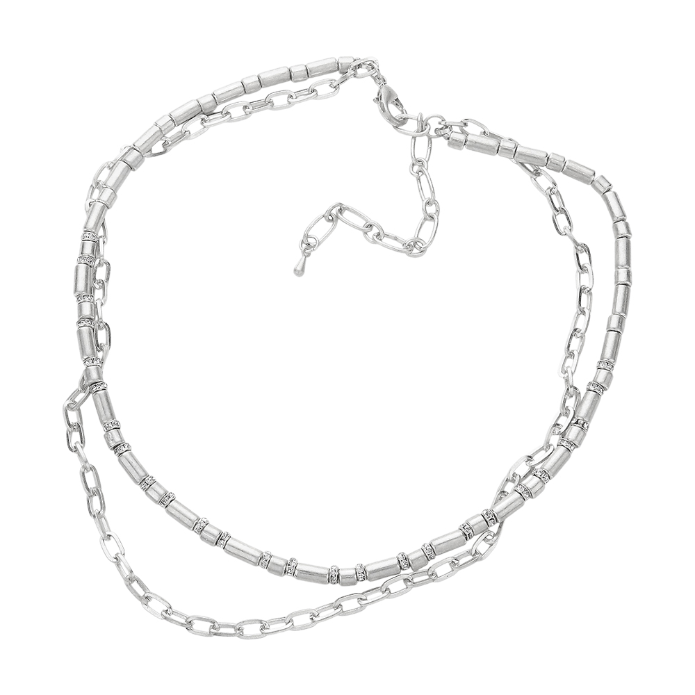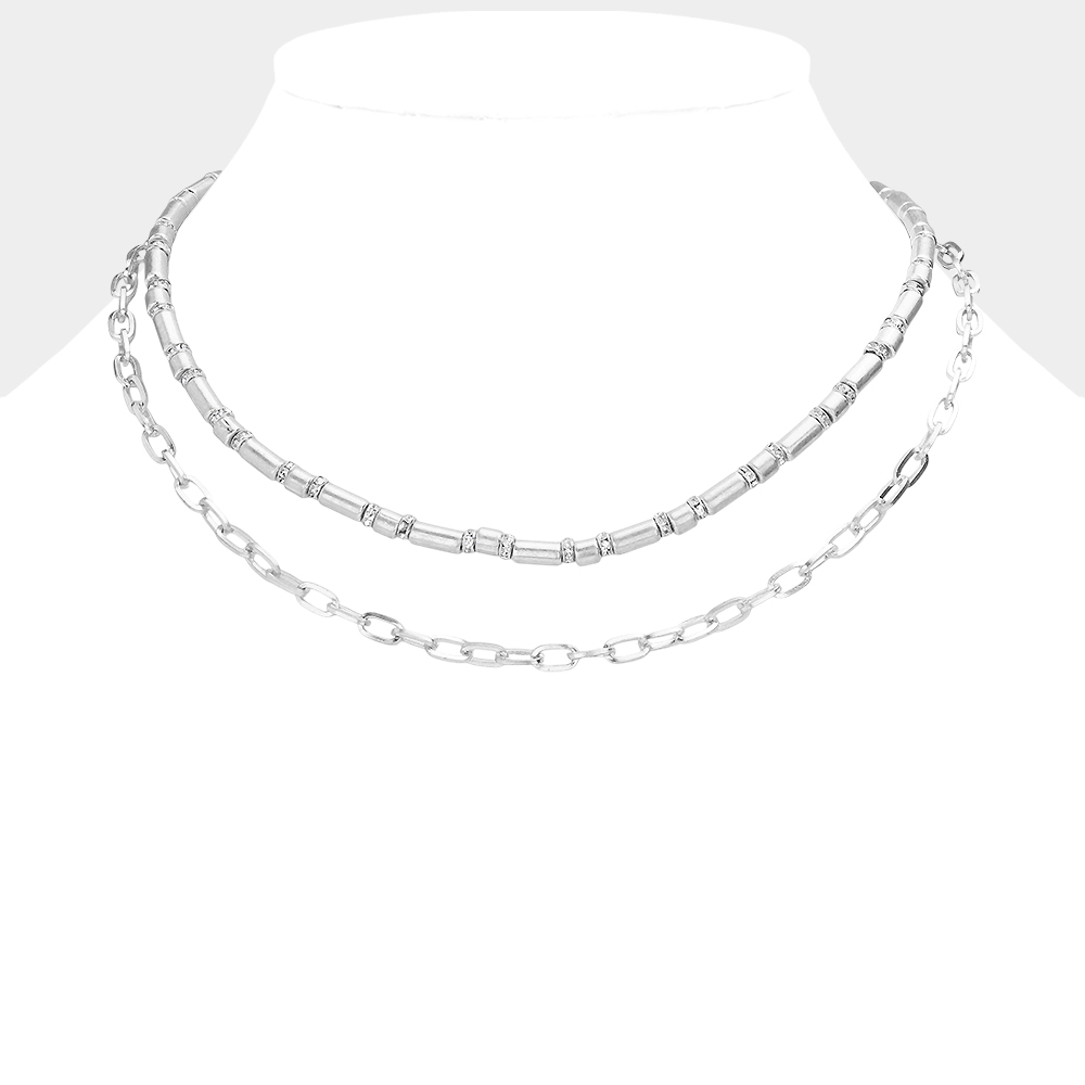 Stone Ring Pointed Open Metal Oval Link Double Layered Necklace