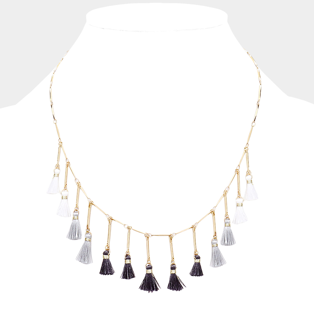 Metal Hexagon Drop Chain Tassel Long Necklace