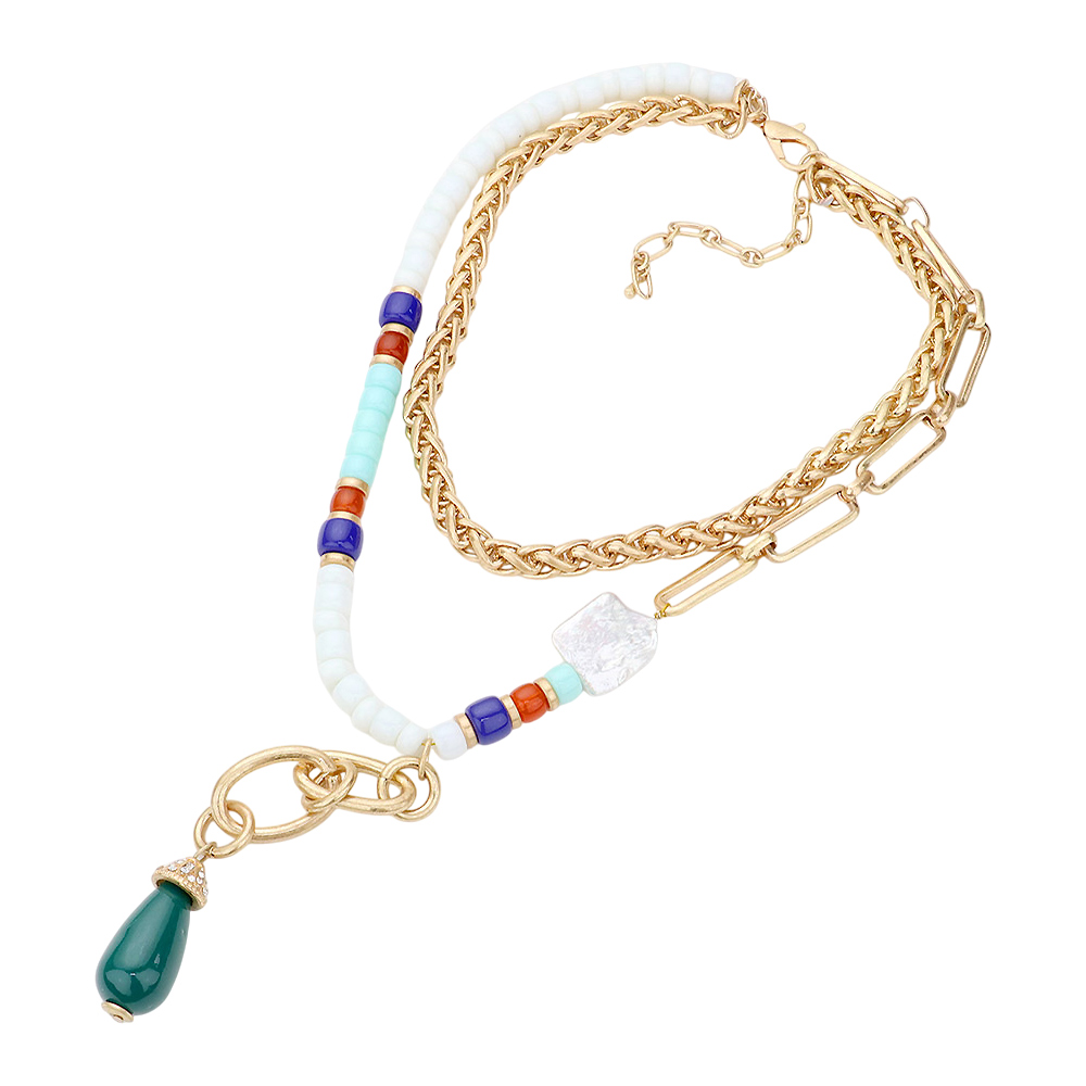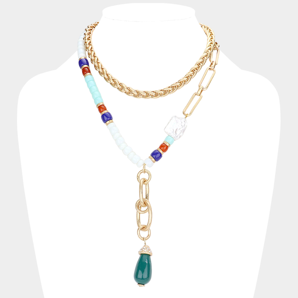5PCS - Metal Cross Accent Faceted Beaded Stretch Multi Layered Bracelets