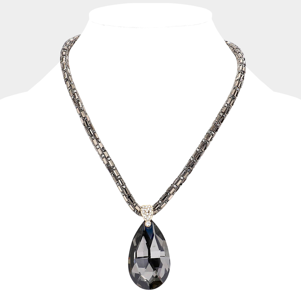 Flower Glass Crystal Teardrop Dangle Clip on Earrings
