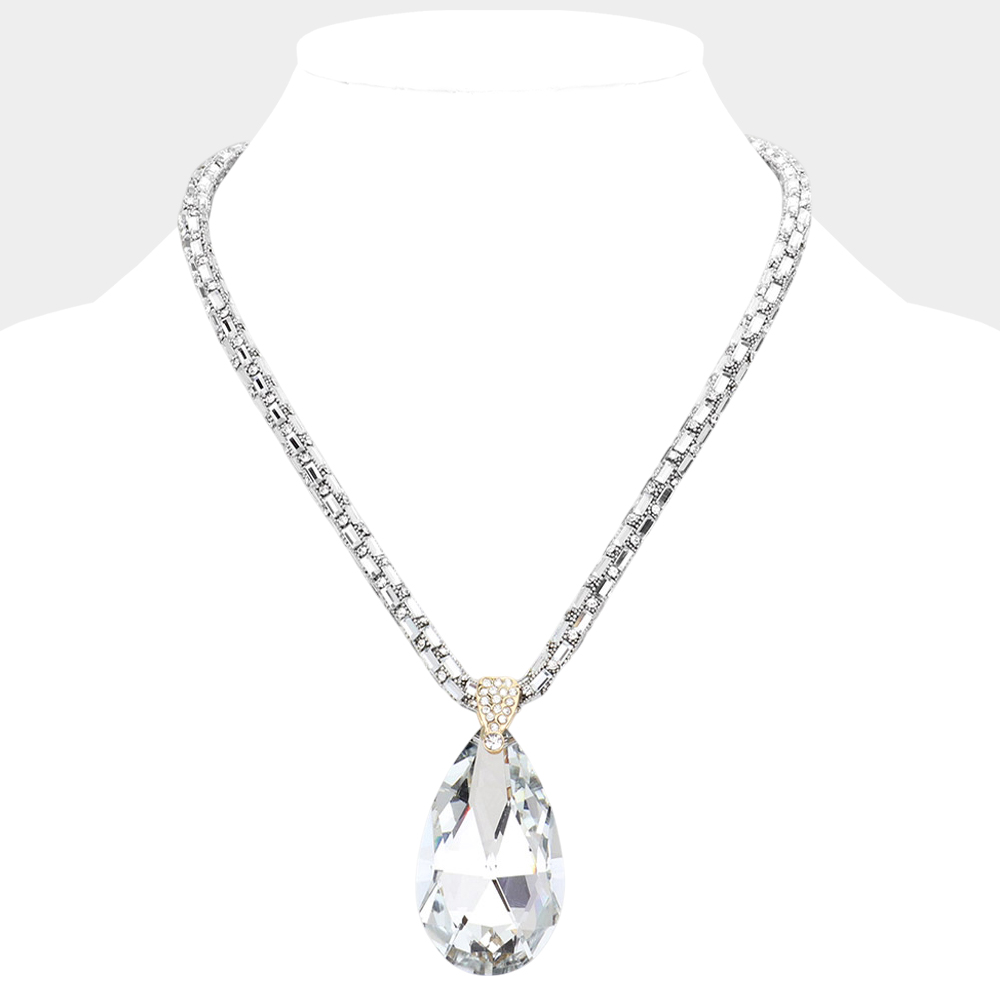 Stainless Steel Stone Paved Anchor Pendant Necklace