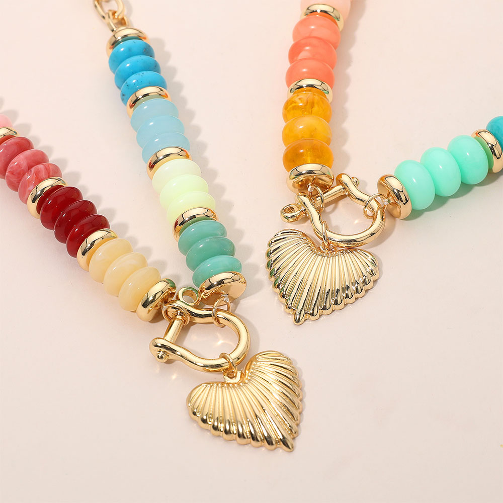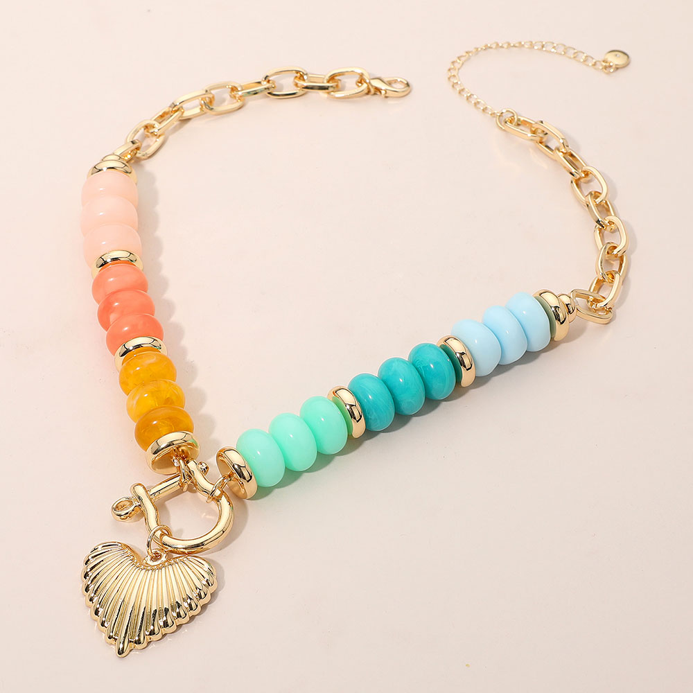• Add a touch of joy and sophistication with this multi-color bead heart pendant necklace. Featuring a radiant mix of tones and a sleek heart charm centerpiece, this necklace blends playful vibrancy with refined elegance—perfect for elevating both casual and chic outfits.