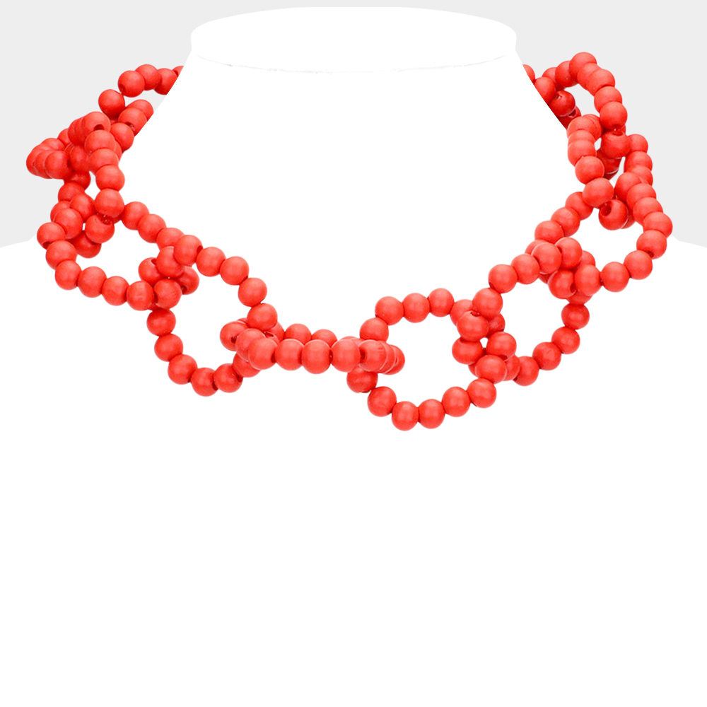 Wood Beaded Open Oval Link Necklace