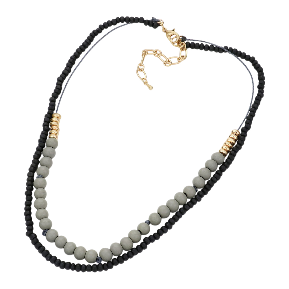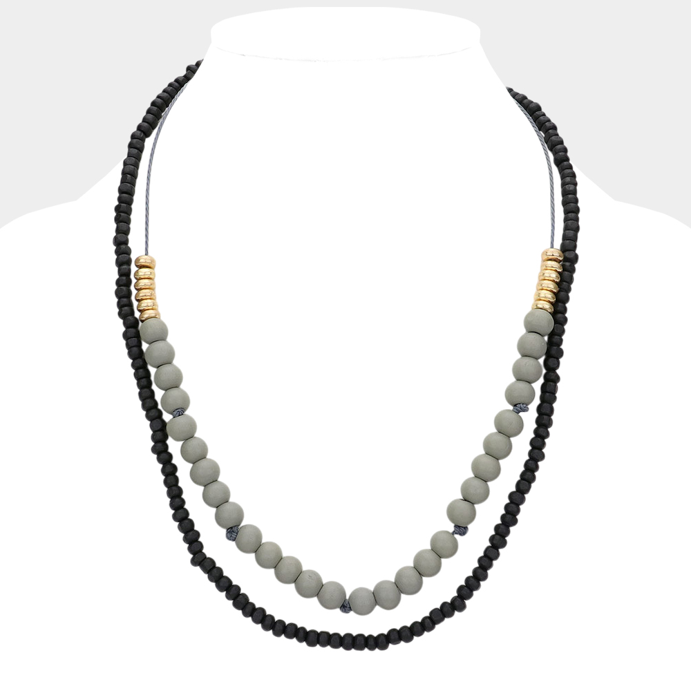 3PCS - Bold Wooden Mixed Beaded Stretch Resin Link Multi Layered Bracelets