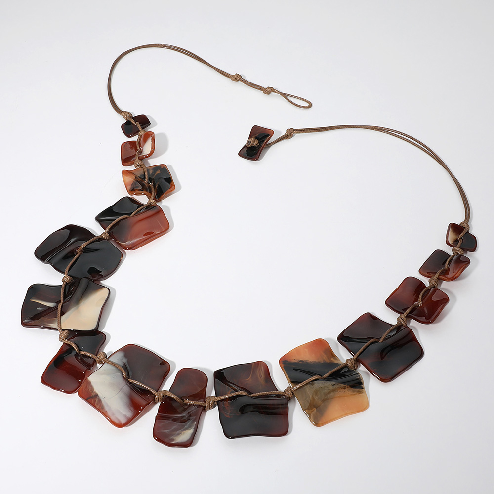 Celluloid Acetate Resin Square Plate Braided Faux Leather Long Necklace