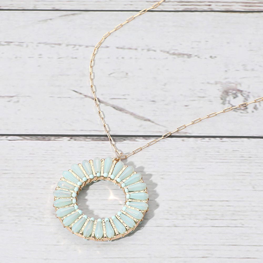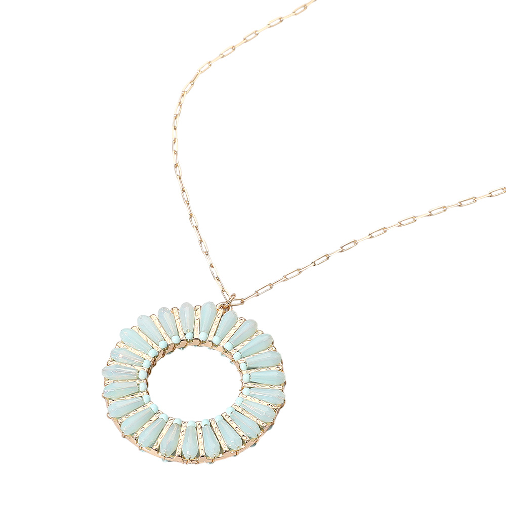 Details • Necklace Size : 30" + 3.5" L • Pendant Size : 1.6" X 1.8" • Elegant necklace featuring a circular pendant with radiating accents that create a sunburst-inspired design. A refined accessory for adding modern flair to both everyday and special occasion outfits. • Lead and Nickel Compliant
