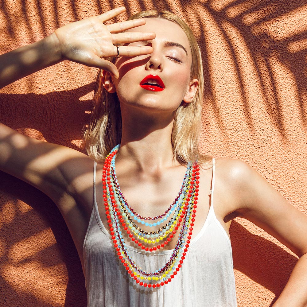 • Elevate your accessories collection with this long beaded necklace featuring shimmering faceted beads. Perfect for layering or wearing solo, it adds refined elegance to casual, office, or evening looks with effortless versatility.