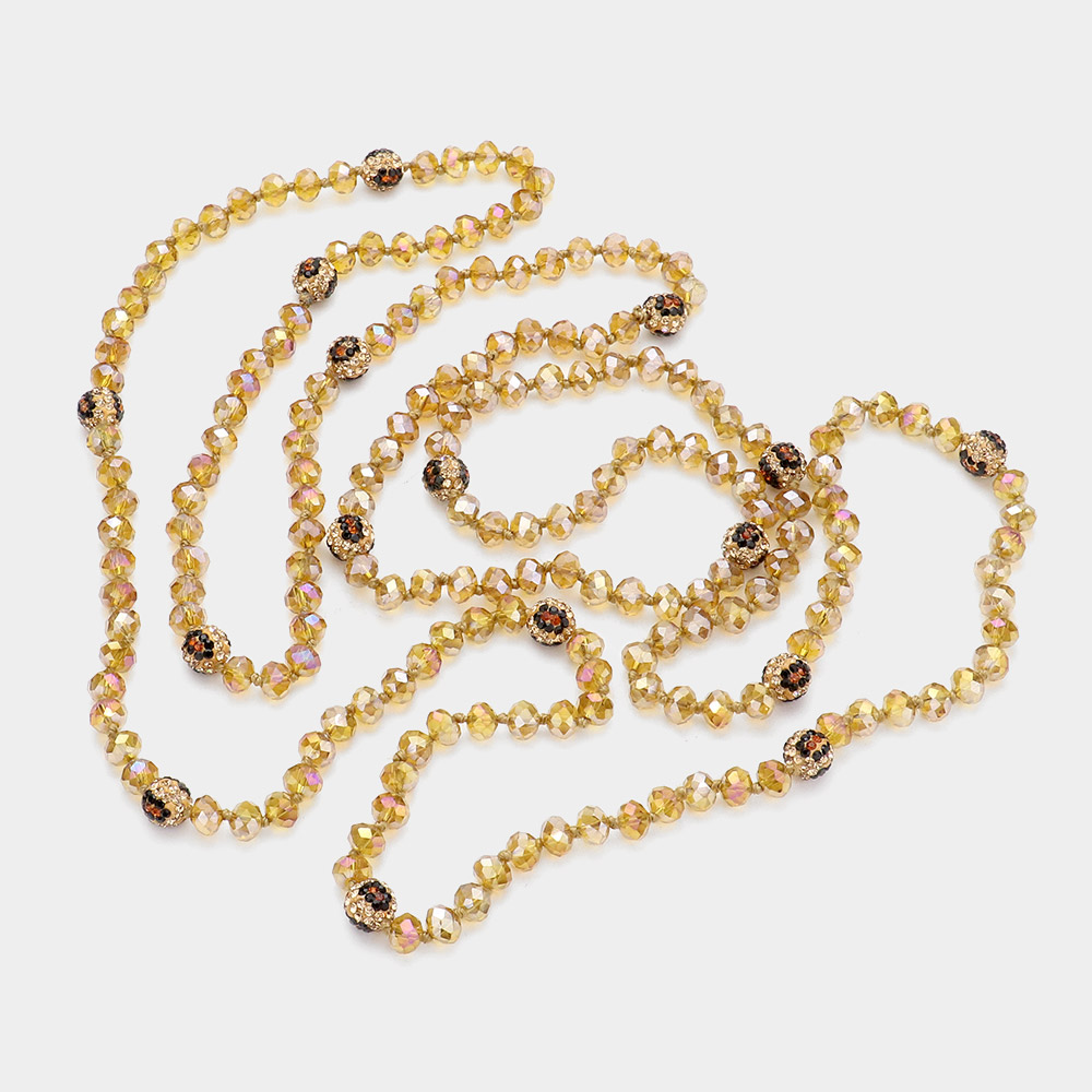 Leopard Pattern Shamballa Ball Accented Faceted Bead Long Necklace