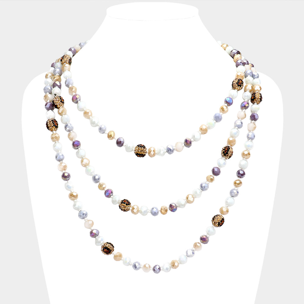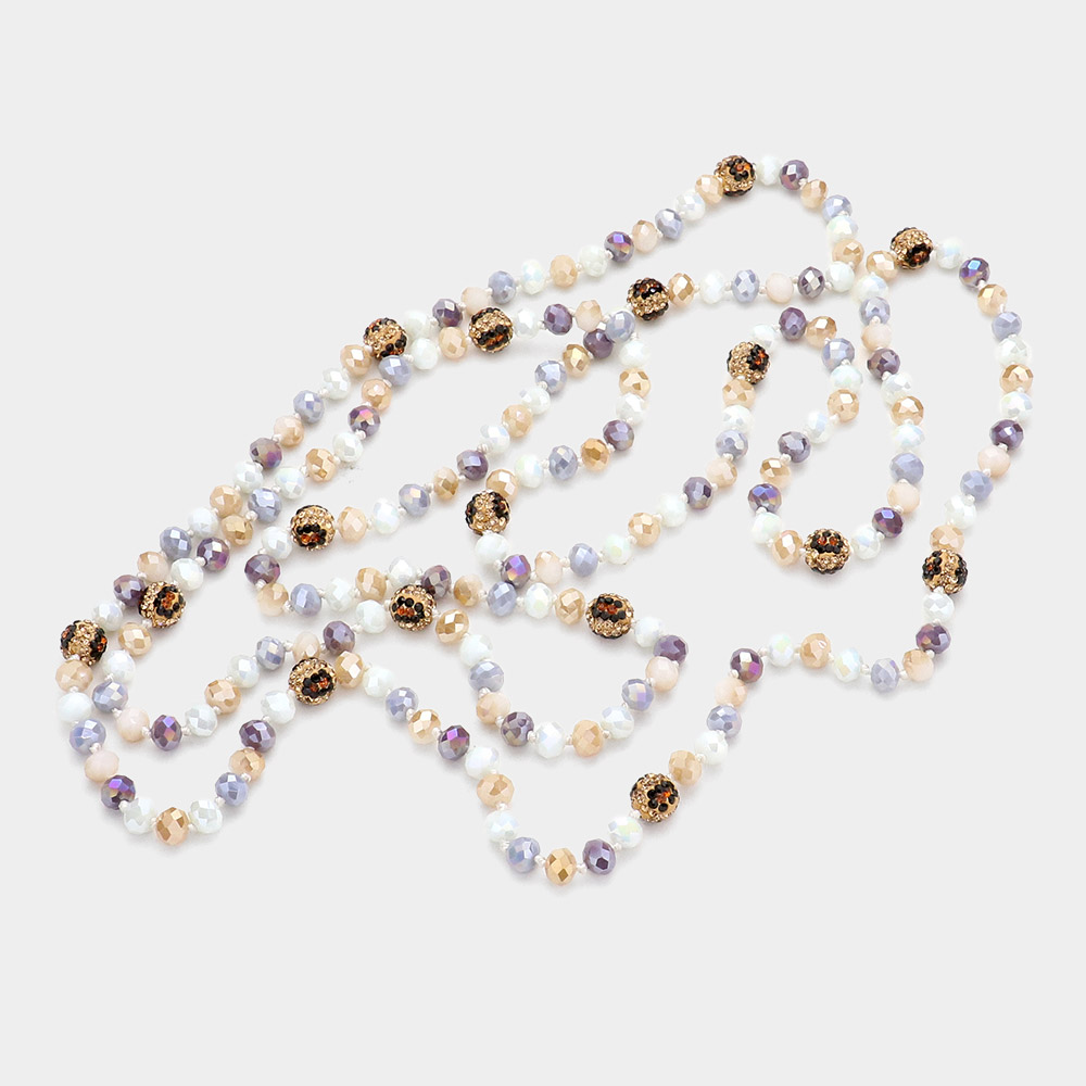 Leopard Pattern Shamballa Ball Accented Faceted Bead Long Necklace