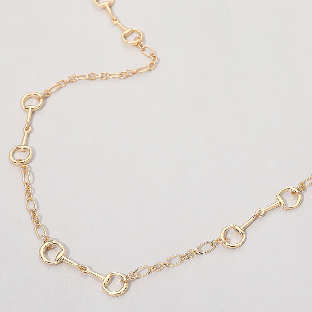 Details • Necklace Size : 38" L • Decor Size : 0.4" L • Sleek horsebit link chain necklace featuring a refined pattern that adds subtle statement appeal to any outfit. Designed for easy layering or solo wear, its adjustable length offers a comfortable fit for daily styling, special occasions, and effortless gifting across all seasons. • Lead and Nickel Compliant