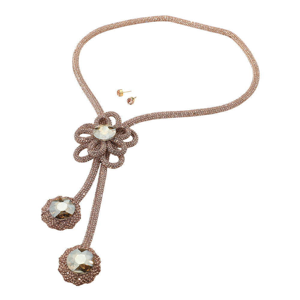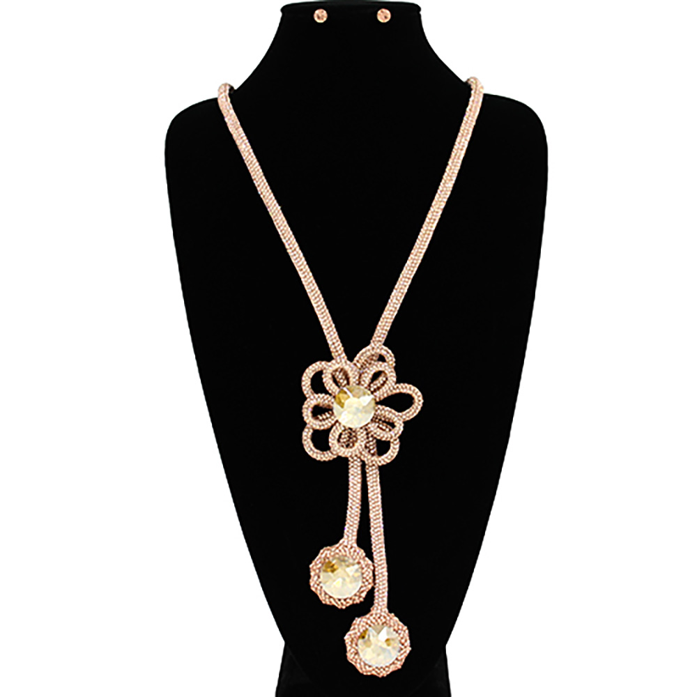 Round Stone Pointed Bling Studded Flower Pendant Long Necklace Round Stone Pointed Bling Studded Flower Pendant Long Necklace Round Stone Pointed Bling Studded Flower Pendant Long Necklace