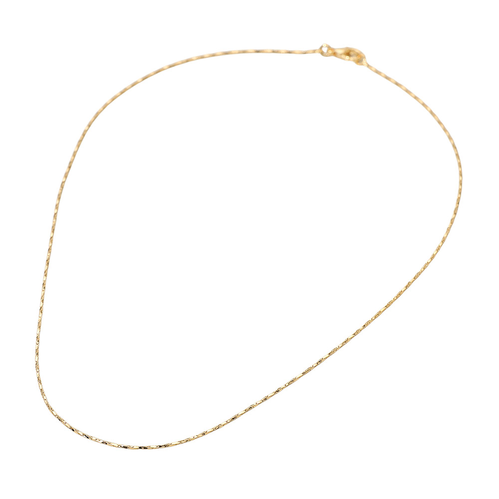 Details • Necklace Size : 16" L • Decor Size : 0.1" L (1mm) • Delicate twist chain necklace featuring a finely textured design that catches the light with every movement. Perfect for layering or wearing solo, this elegant piece adds a refined shimmer to casual and dressy looks alike. • Lead and Nickel Compliant • Gold Filled • Made In Brazil