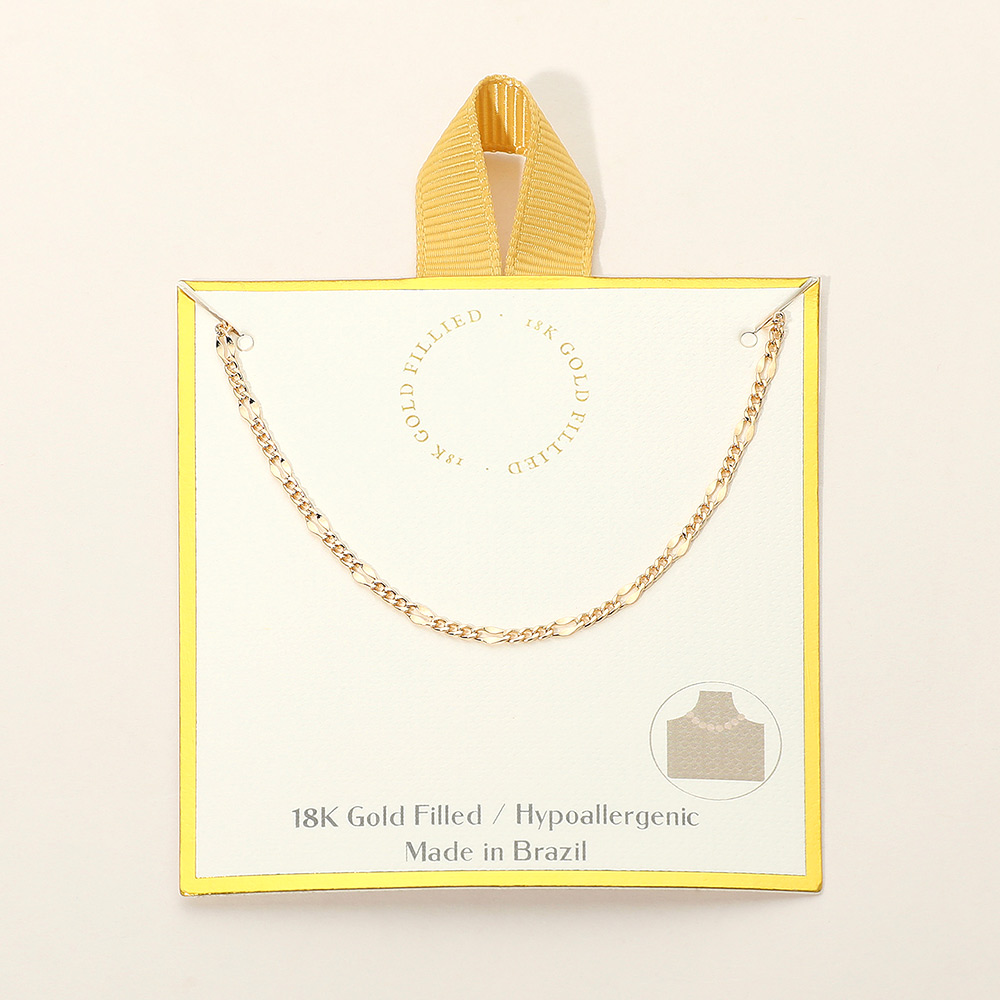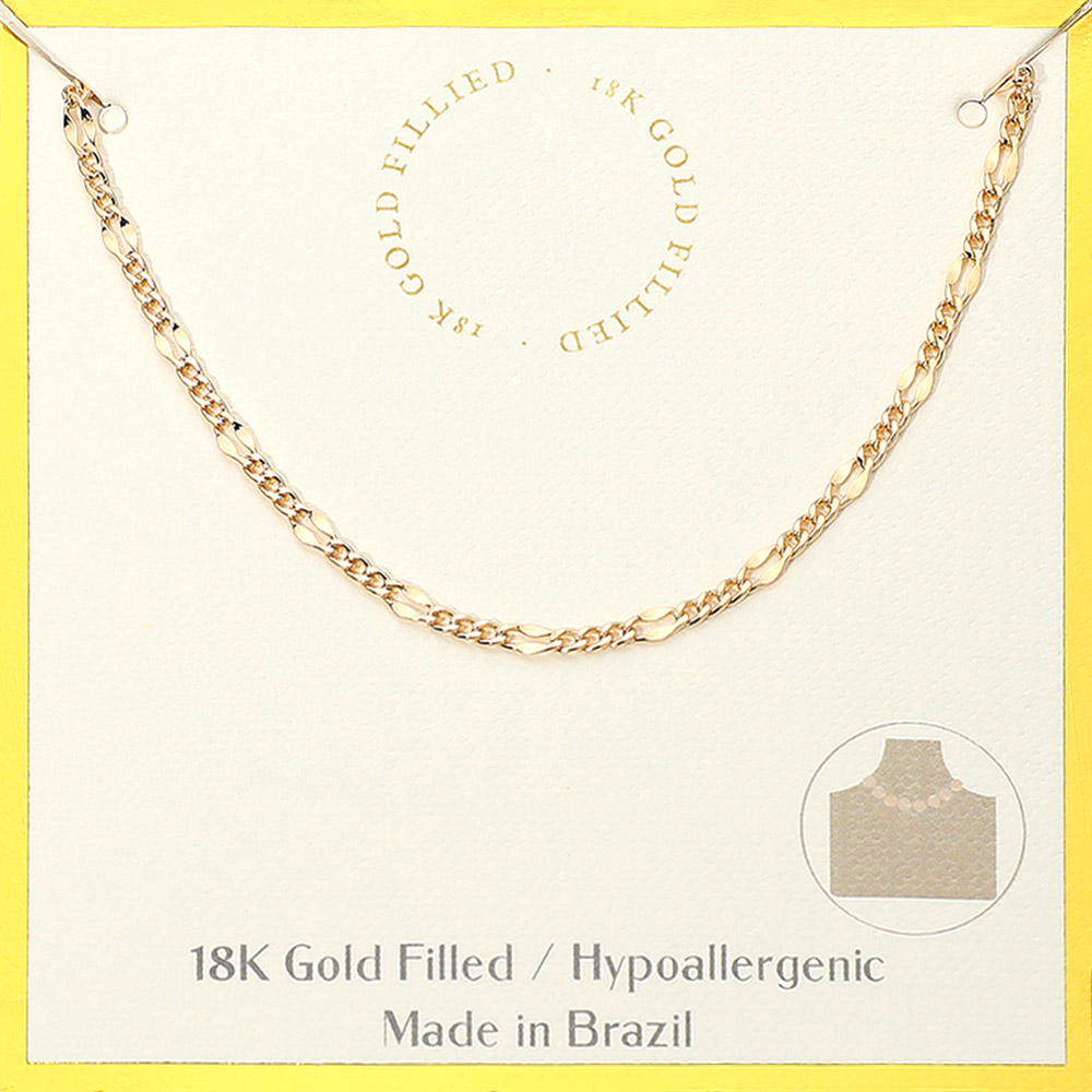 Details • Necklace Size : 16" + 2" L • Decor Size : 0.1" L • Water resistant and tarnish free • Timeless Figaro chain necklace designed with a sleek, versatile style perfect for layering or wearing alone. A refined piece that adds elegance to casual looks or special occasions, making it an essential accessory in any jewelry collection. • Gold Filled • Hypoallergenic • Lead and Nickel Compliant • Made In Brazil