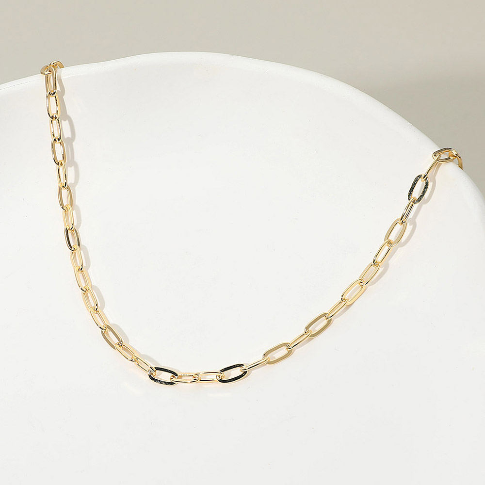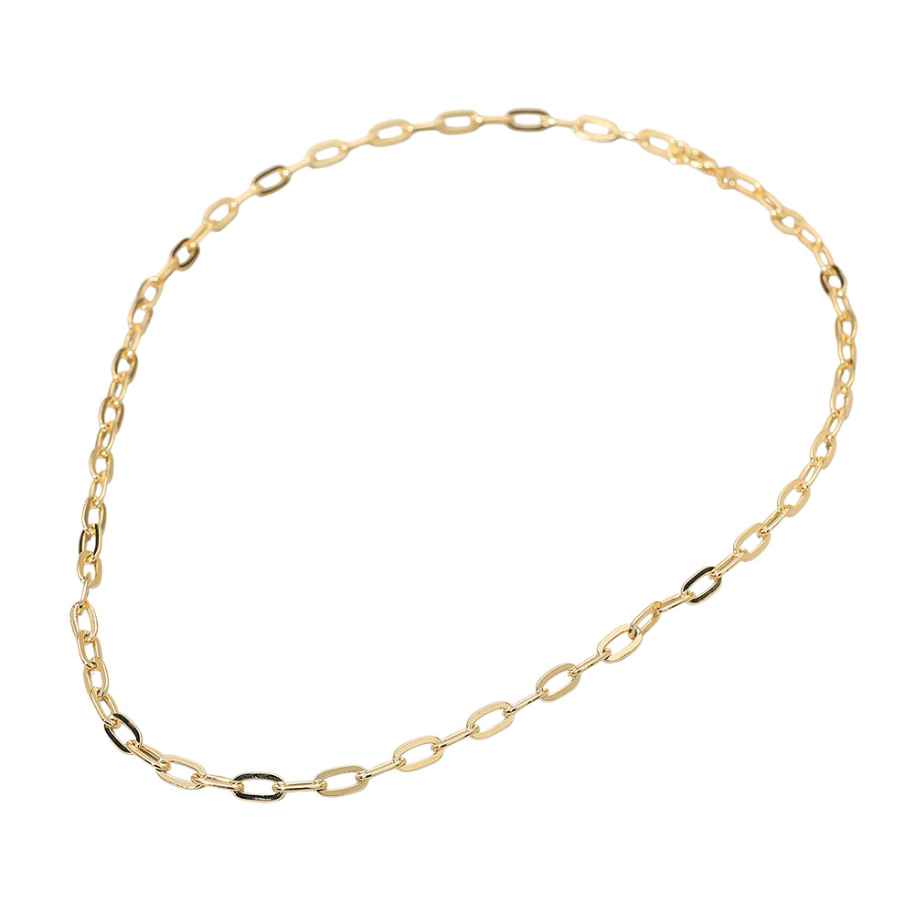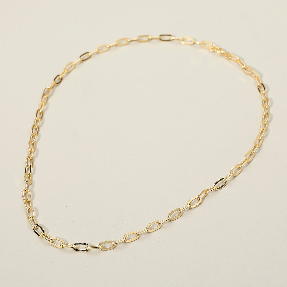 Details • Necklace Size : 18" L • Decor Size : 0.2" L (4mm) • Contemporary oval paperclip chain necklace featuring elongated links for a sleek, modern look. Lightweight yet bold, this versatile accessory transitions effortlessly from casual to formal, adding sophistication to any layered or standalone style. • Lead and Nickel Compliant • Gold Filled • Made In Brazil