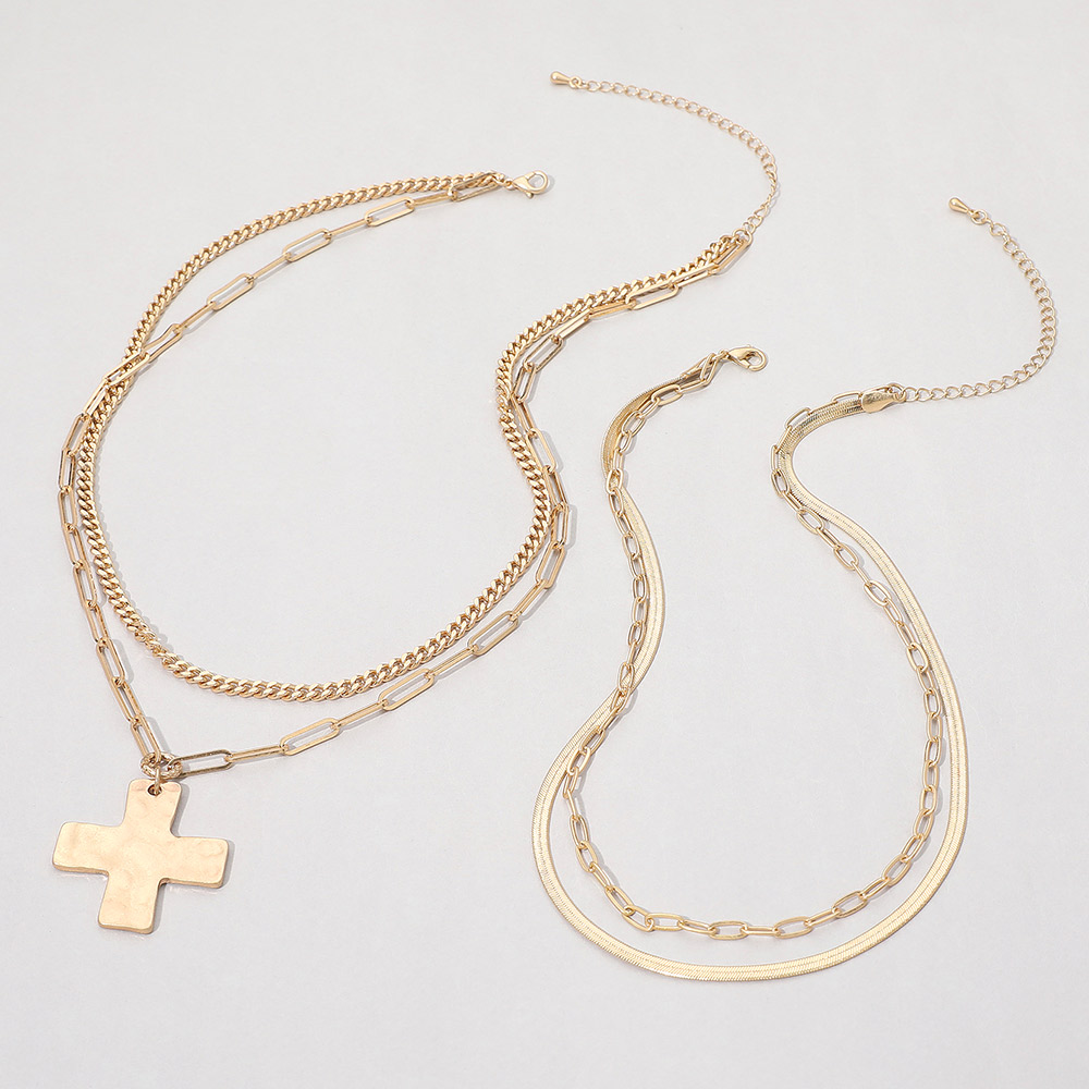 • Fashion-forward layered necklace set featuring mixed chain styles and a bold cross pendant detail. Designed for adjustable length, comfortable wear, and effortless layering to elevate everyday outfits or add impact to special occasion looks. Perfect for gifting or personal styling.