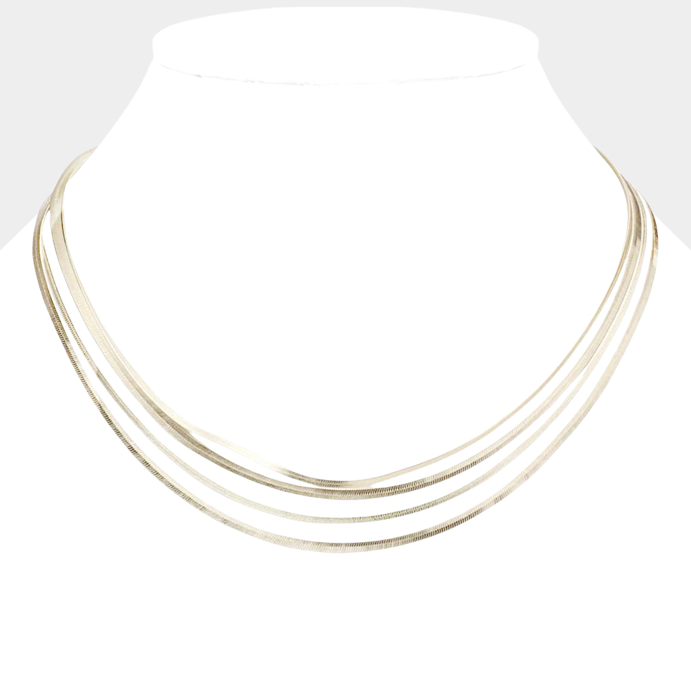 Gold Dipped Triple Layered Sleek Flat Snake Chain Necklace