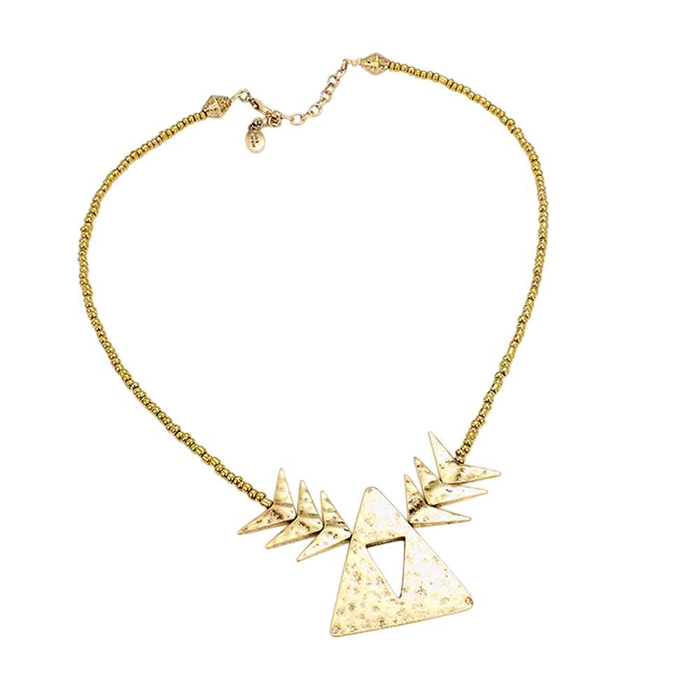 Beaded Cutout Triangle Metal Necklace