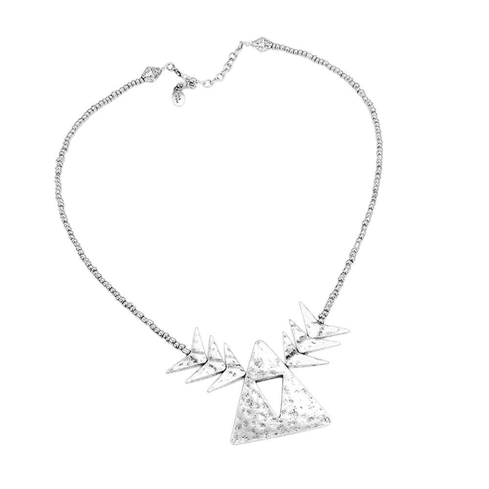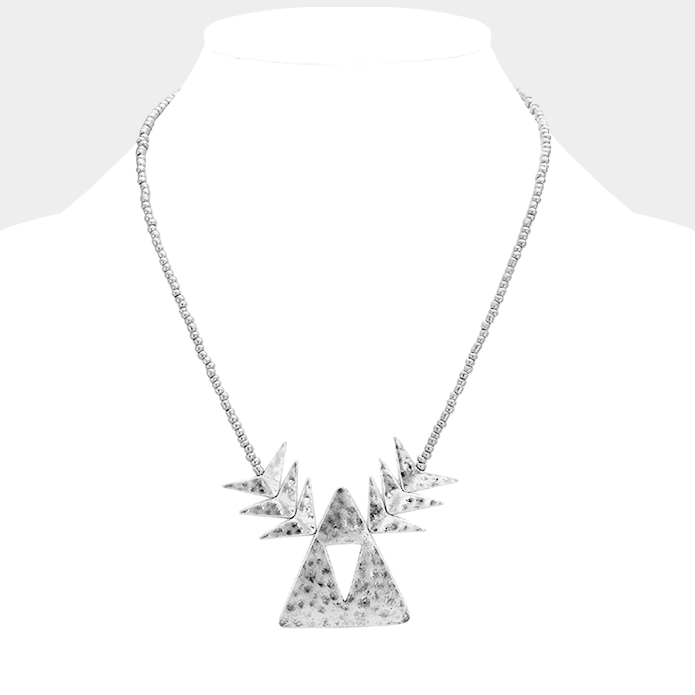 Beaded Cutout Triangle Metal Necklace