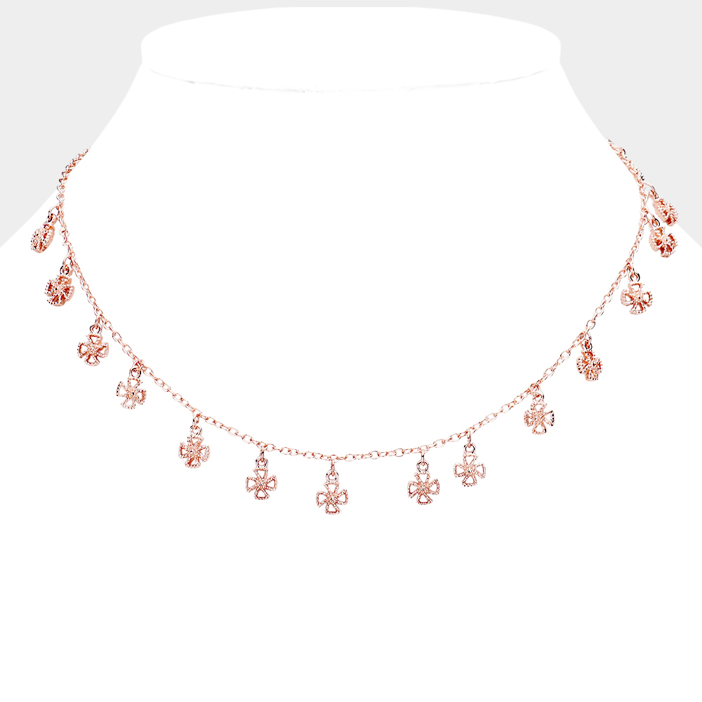 Gold Dipped Cubic Zirconia Fishbone Pendant Necklace