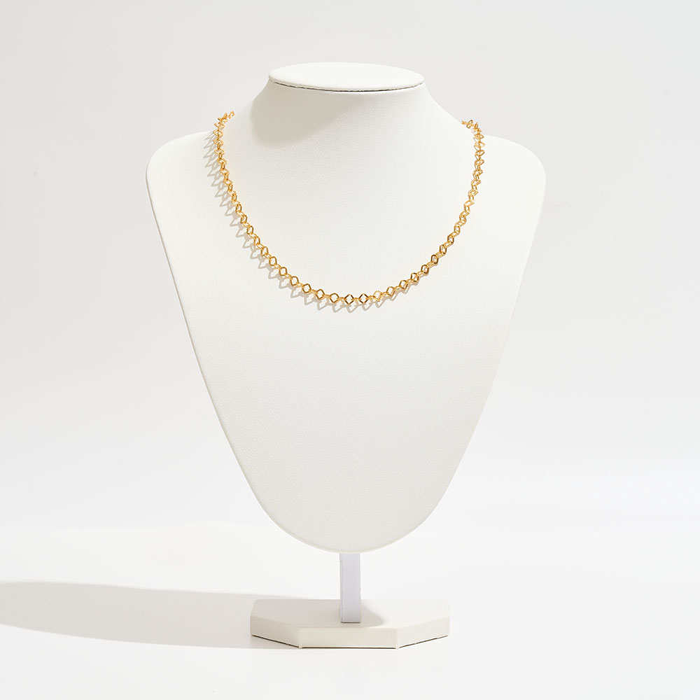 Details • Necklace Size : 18" + 1" L • Decor Size : 0.2" L • Elevate your everyday look with this geometric link chain necklace crafted in brass. Its minimalist pattern and lightweight design make it perfect for layering or wearing solo. A versatile accessory that transitions seamlessly from casual wear to elegant occasions with modern charm. • Brass • Gold Dipped • Hypoallergenic • Made In Korea