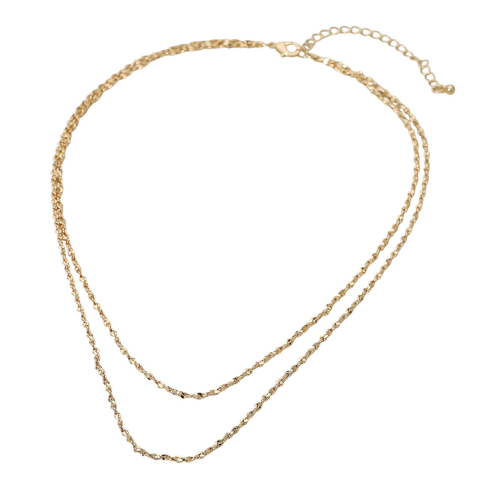 Details • Necklace Size : 18" + 3" L • Decor Size : 1" L • Add timeless style to your collection with this layered twisted chain necklace featuring subtle texture and elegant design. Perfect for layering with other pieces or wearing on its own, this versatile necklace brings a chic minimalist touch to both everyday outfits and dressy occasions. • Lead and Nickel Compliant • Gold Dipped