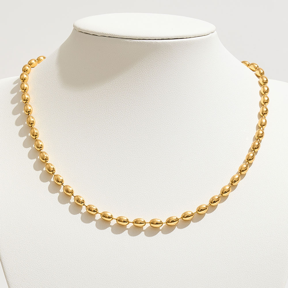 Details • Necklace Size : 18" + 1" L • Decor Size : 0.2" L • Refine your look with this beaded chain necklace designed with polished oval beads for a smooth, elegant finish. Perfect for layering or wearing solo, this versatile piece adds a classic touch to any outfit, making it an essential accessory for both everyday style and dressy occasions. • Brass • Gold Dipped • Made In Korea