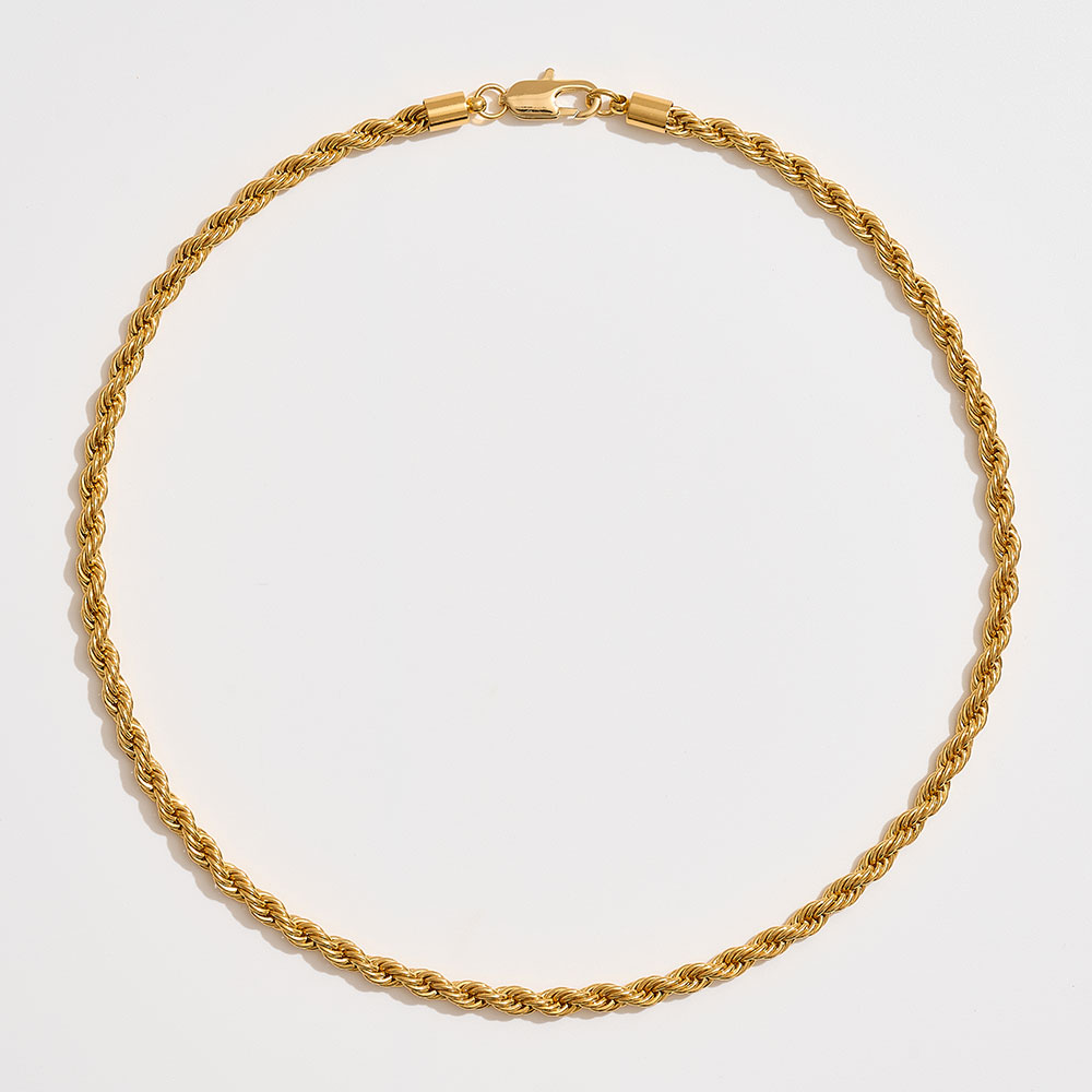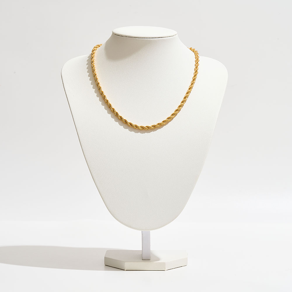Details • Necklace Size : 18" + 1" L • Decor Size : 0.2" L • This rope chain necklace brings timeless style with its textured interwoven design, crafted in brass for durability and shine. Perfect for layering or as a bold solo accessory, it adds sophistication to everyday looks and makes a standout statement for any occasion. • Brass • Gold Dipped • Made In Korea