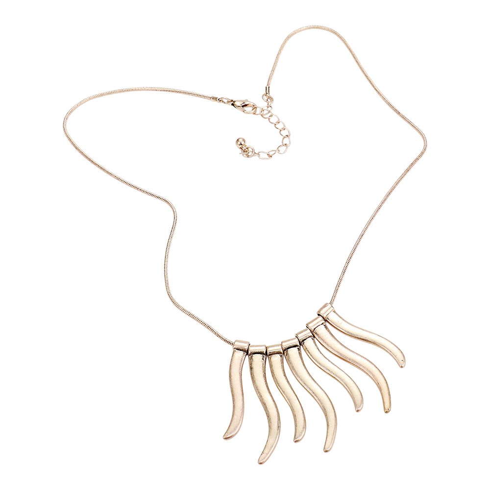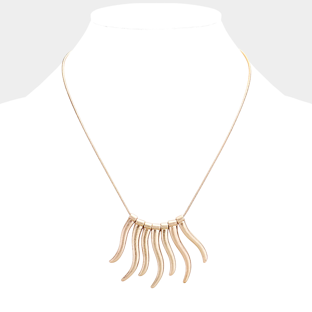 Textured Metal Sea Shell Starfish Coral Charm Station Necklace