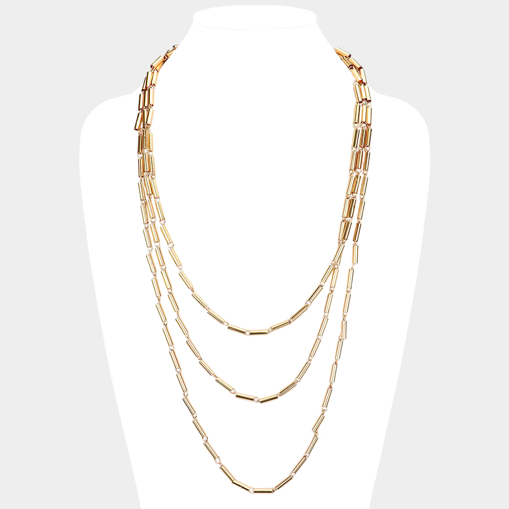 14K Gold Plated Round-Cut Solitaire CZ Stone Link Necklace