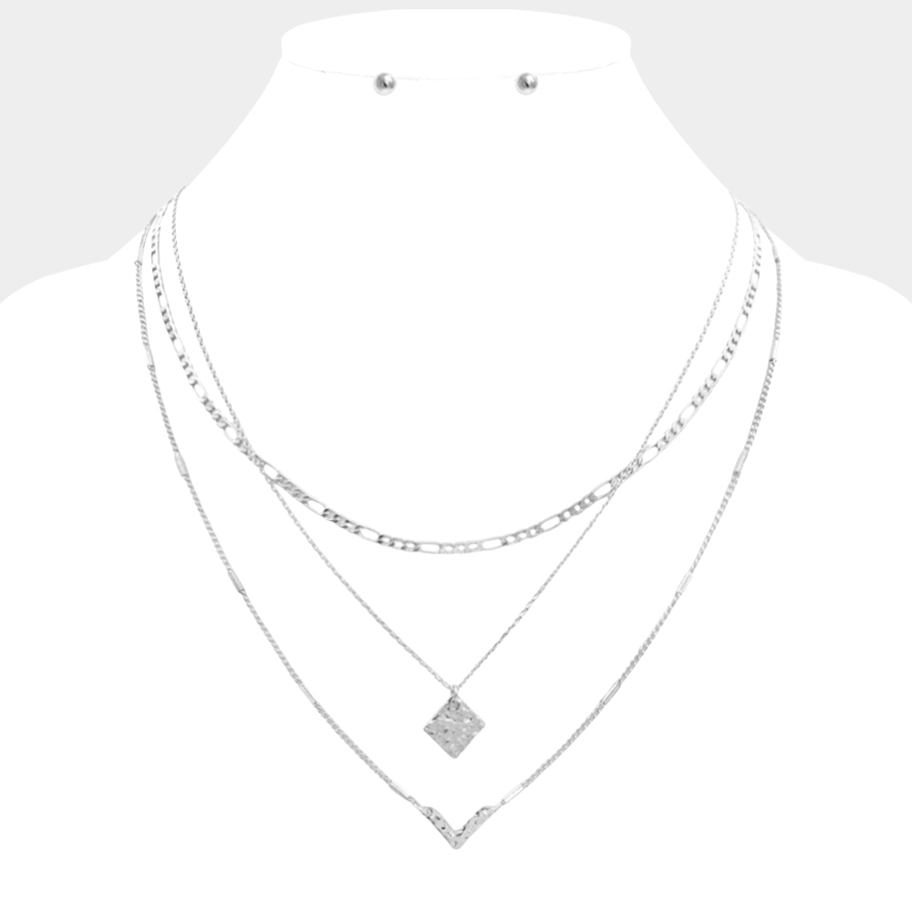 Hammered Metal Open Heart Toggle Pendant Necklace
