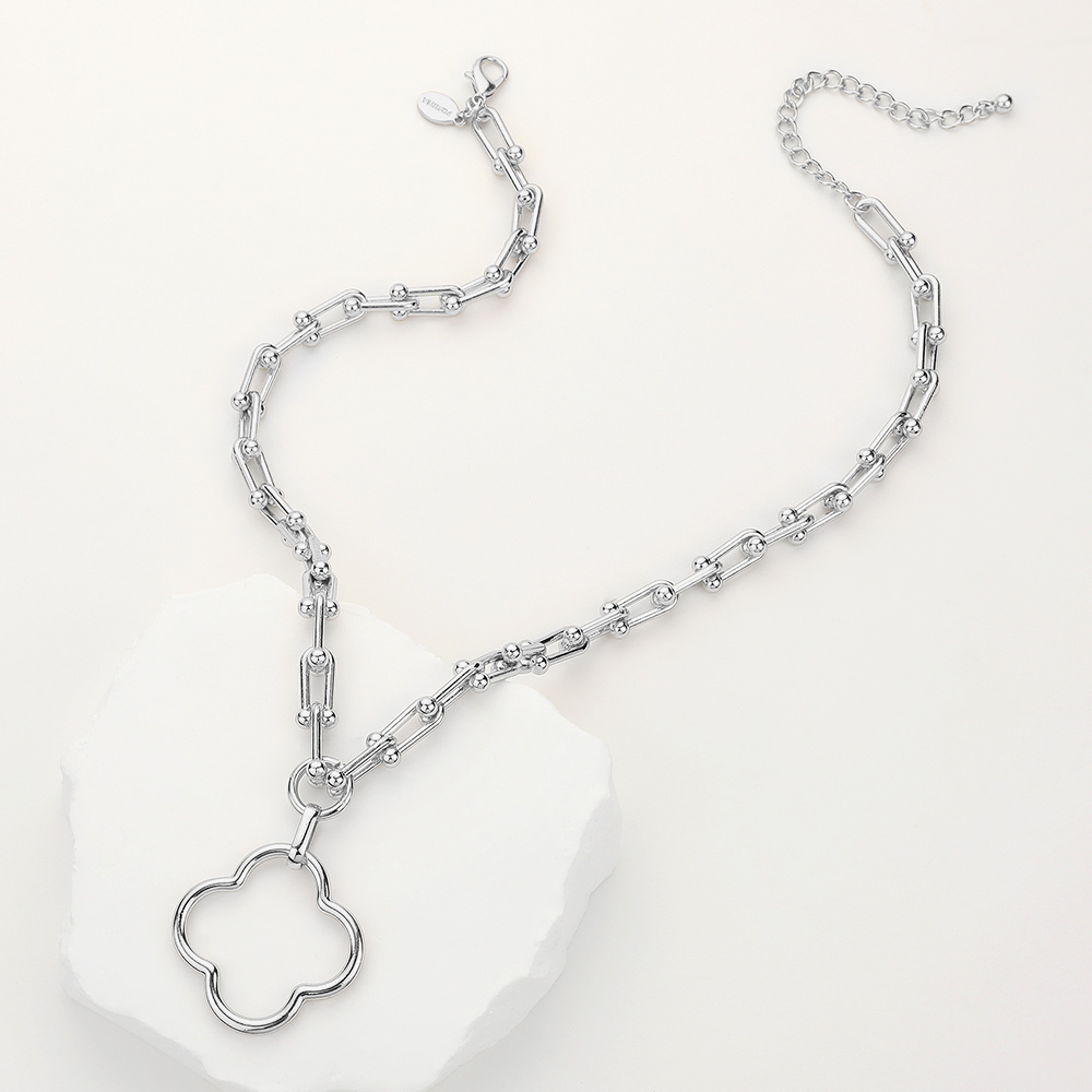 Open Quatrefoil Pendant Hardware Chain Necklace