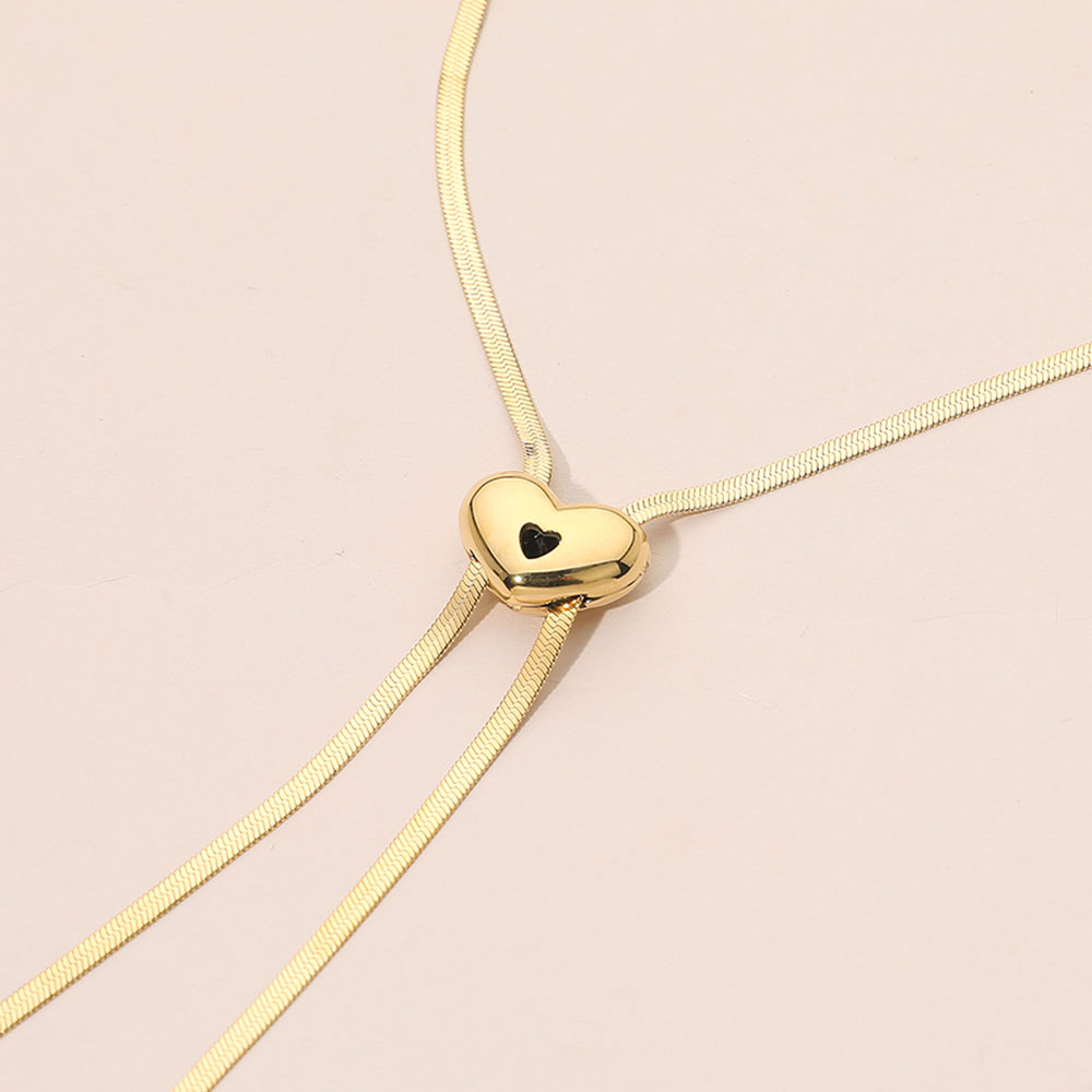 SECRET BOX_Stainless Steel Adjustable Heart Slider Herringbone Chain Necklace