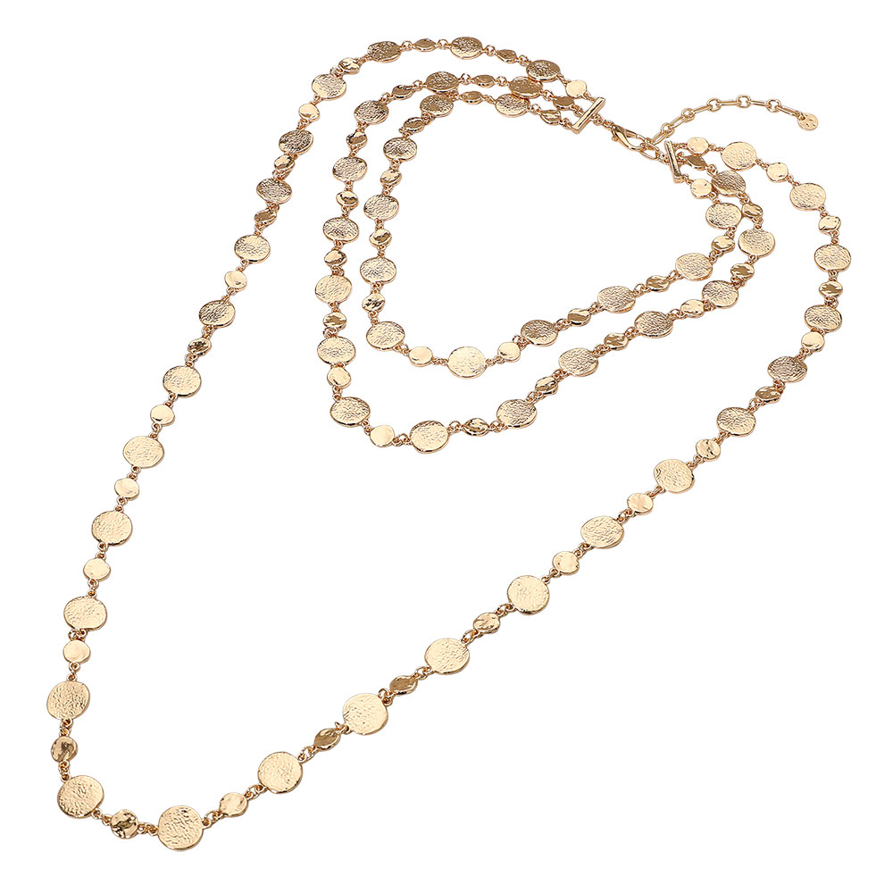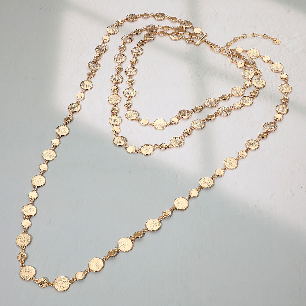 Details • Necklace Size : 17" + 3.25" L • Decor Size : 1.2" L • Elevate your style with this elegant multi-layer coin charm necklace, designed to add depth and refined movement to any look. Its delicate, cascading layers create a polished statement that complements both casual and sophisticated ensembles with effortless versatility. • Lead and Nickel Compliant